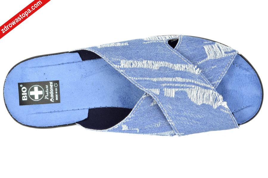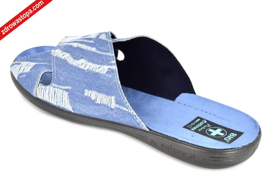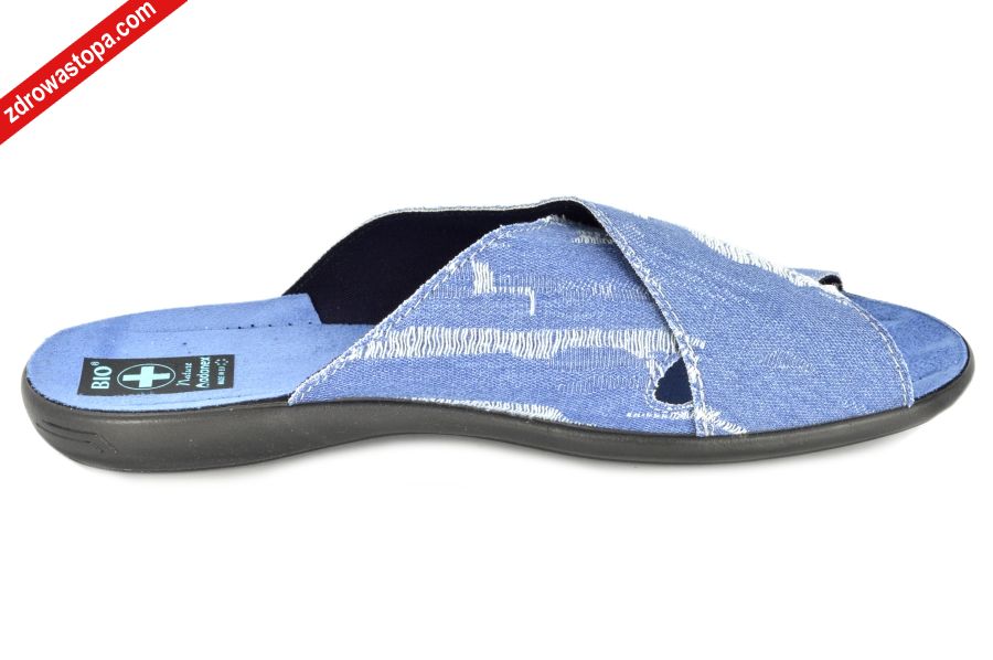 Typ: klapki męskie Kolor: granatowy Materiał wierzchni: materiał naturalny Wnętrze buta: materiał naturalny Dodatkowe informacje: Komfortowe kapcie typu Bio, odkryte palce.