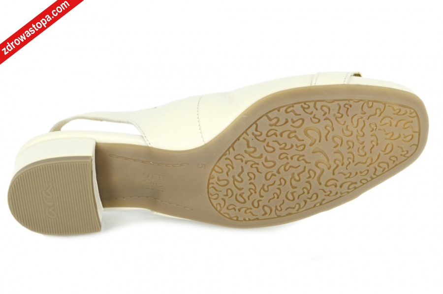 Typ: sandał damski Kolor: beżowy – marmor Materiał wierzchni: skóra naturalna Wnętrze buta: całość z skóry naturalnej Dodatkowe informacje: pasek z klamerką na pięcie, miękka wkładka. Spody lekkie, bardzo elastyczna amortyzujące drgania, wysokość obcasa 35mm.