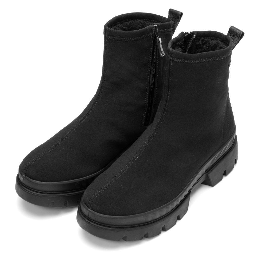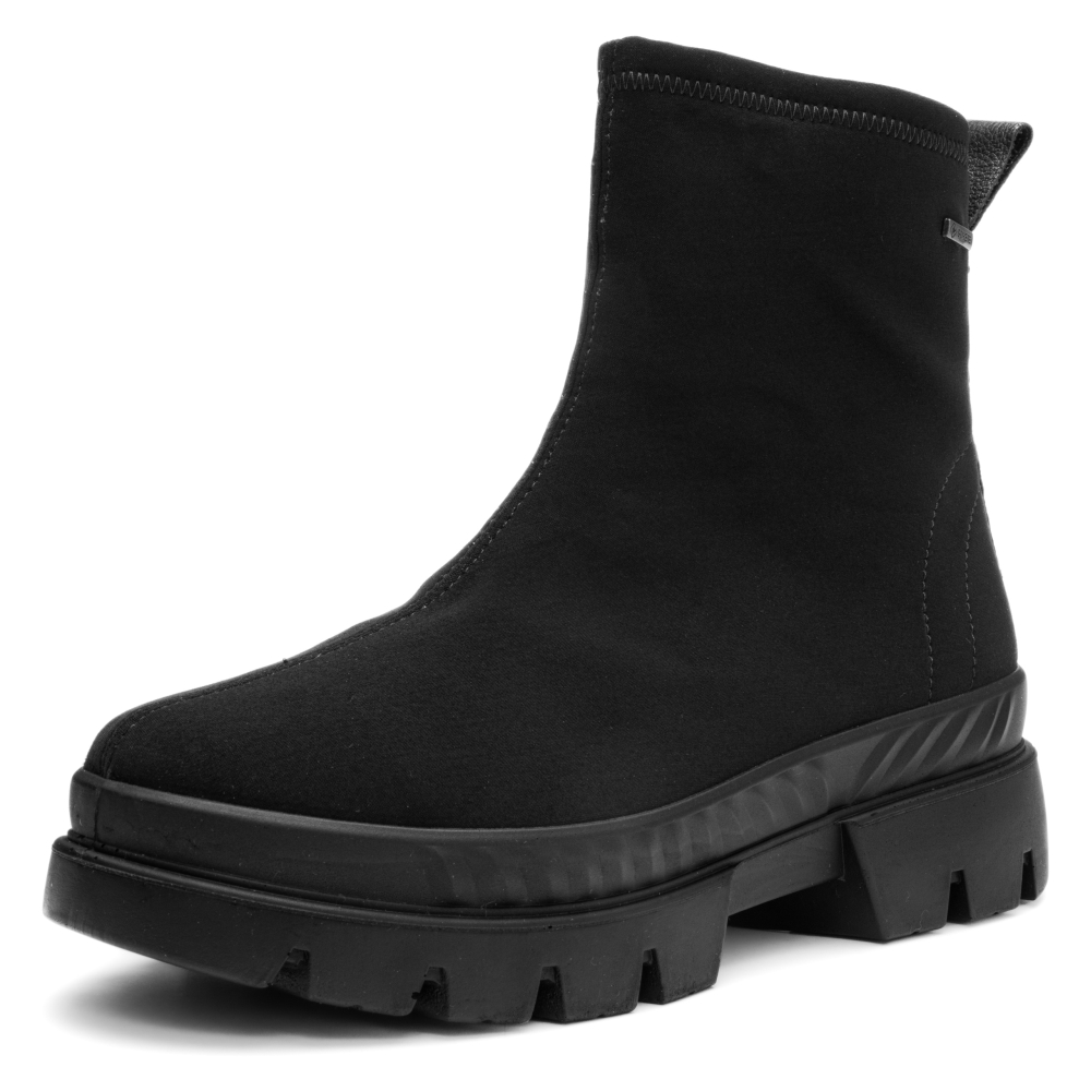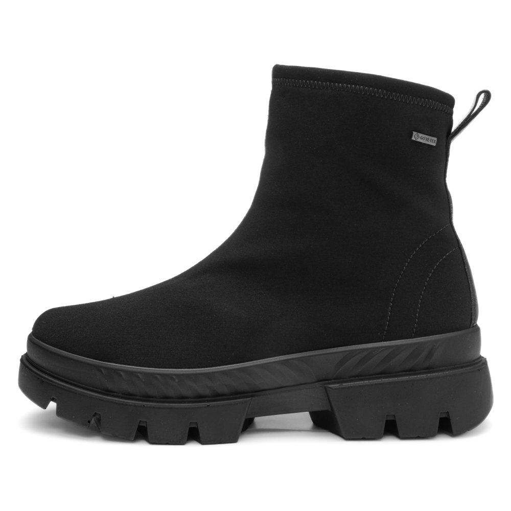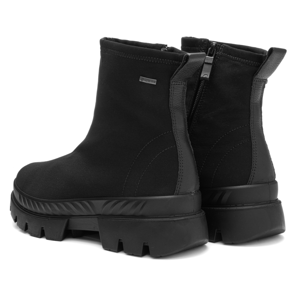 Typ: botki damskie Kolor: czarny Materiał wierzchni: materiał z GORE-TEX Wnętrze buta: wełna i futerko Dodatkowe informacje: Obuwie posiada wysokiej jakości membranę klimatyczną, dzięki tej oddychającej membranie obuwie jest wodoodporne i zapobiega przed przenikaniem zewnętrznych czynników do środka obuwia oraz gwarantuje: