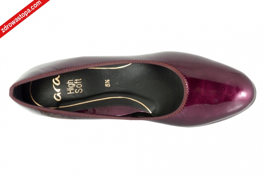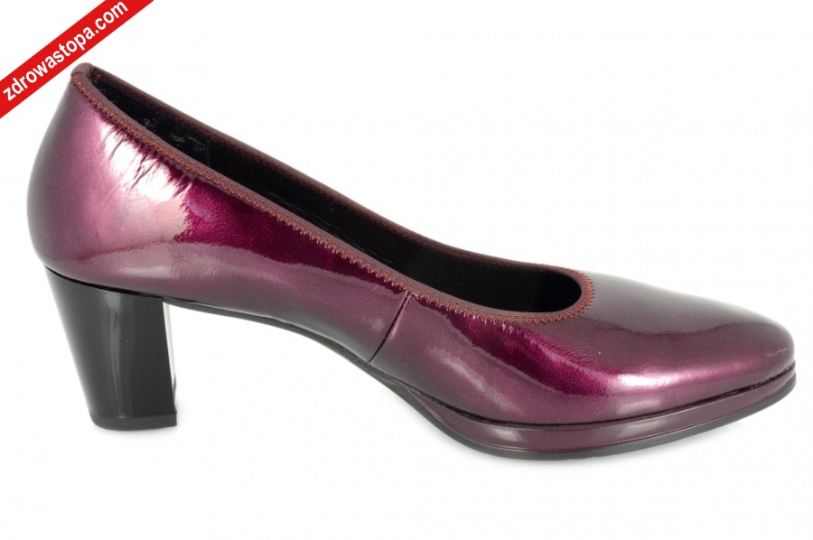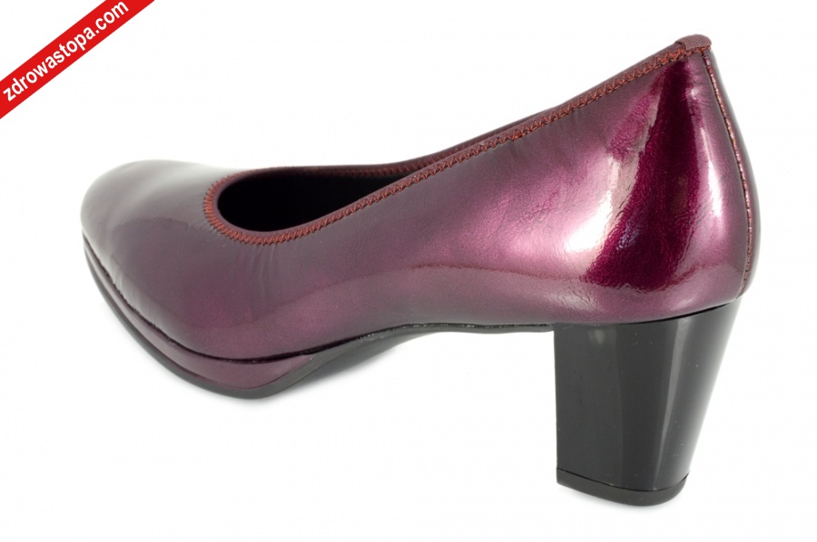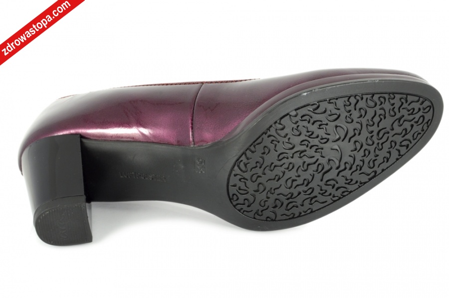 Typ: czółenka Kolor: bordowy – chilli Materiał wierzchni: naturalna skóra lakierowana Wnętrze buta: skóra naturalna Dodatkowe informacje: Wykonane z miękkiej skóry, skórzana wkładka HIGH SOFT, podeszwy elastyczne i antypoślizgowe. Wysokość obcasa 50 mm