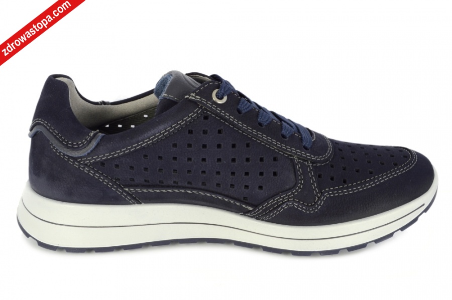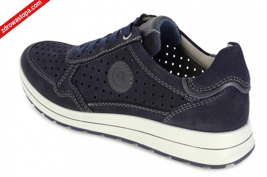 Typ: półbuty męskie Kolor: granatowy – blau Materiał wierzchni: skóra naturalna zamszowa Wnętrze buta: materiał obuwniczy Tęgość: H Dodatkowe informacje: Obuwie wykonane z miękkie skóry zamszowej, dziurki poprawiają przewiewność, sznurowane. Spody lekkie i antypoślizgowe. Wyjmowana miękka wkładka pozwala na zastąpienie jej własną np: ortopedyczną. Wysokość podwyższenia pod piętą 45mm.