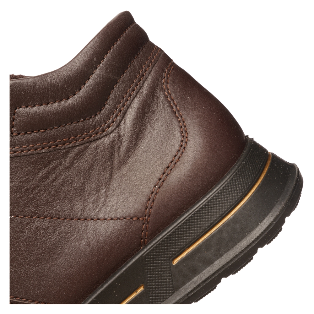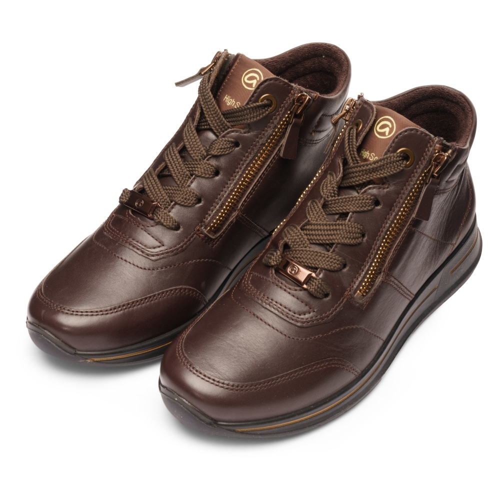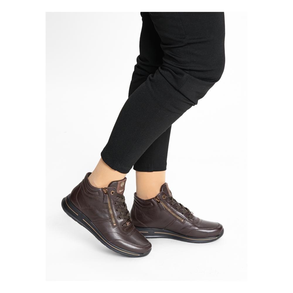 Typ: botki damskie Kolor: brązowy Materiał wierzchni: skóra naturalna Wnętrze buta: materiał obuwniczy Tęgość: H Dodatkowe informacje: Obuwie wykonane z bardzo miękkiej skóry naturalnej, sznurowane suwak z boku ułatwiający zakładanie. Spody lekkie i antypoślizgowe. Wyjmowana miękka wkładka pozwala na zastąpienie jej własną np: ortopedyczną. Wysokość podwyższenia pod piętą 30mm.