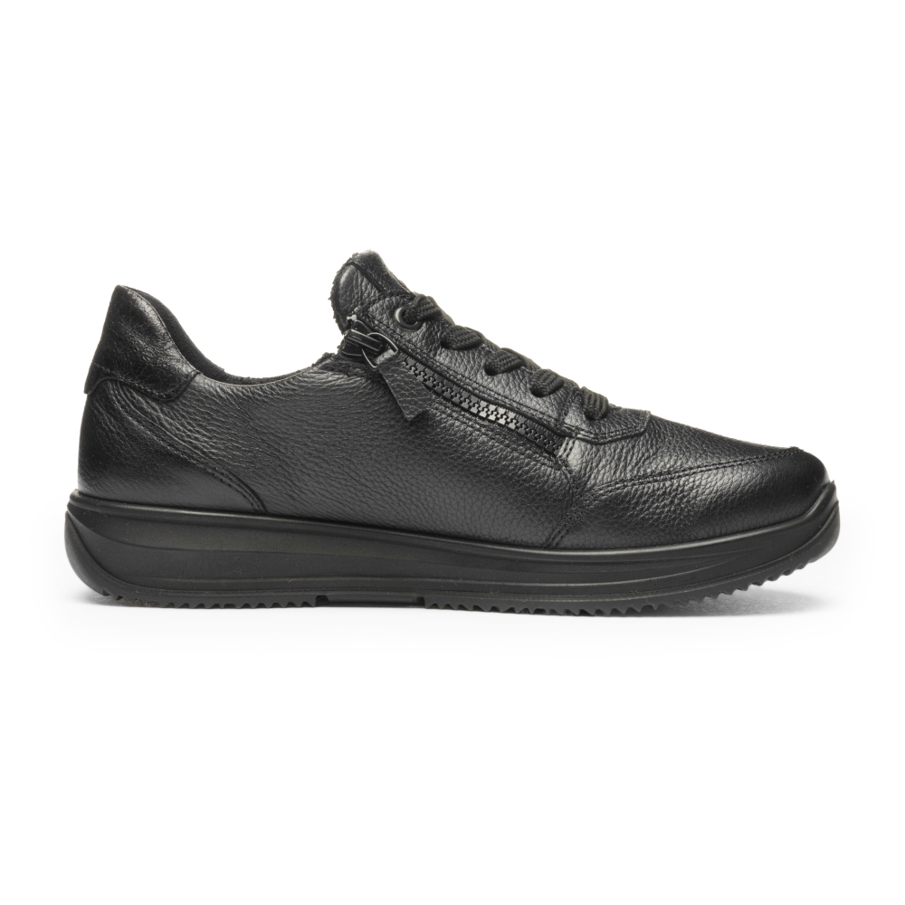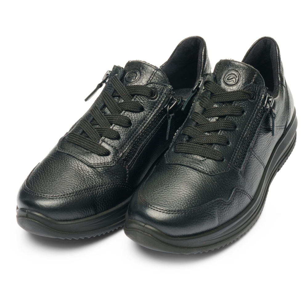 Typ: półbuty damskie Kolor: czarny Materiał wierzchni: skóra naturalna Wnętrze buta: materiał obuwniczy Tęgość: H Dodatkowe informacje: Obuwie wykonane z bardzo miękkiej skóry naturalnej, sznurowane, suwaki po bokach ułatwiające zakładanie. Spody lekkie i antypoślizgowe. Wyjmowana miękka wkładka pozwala na zastąpienie jej własną np: ortopedyczną.