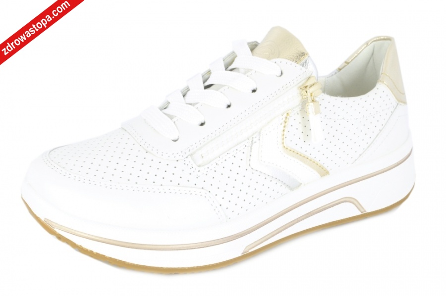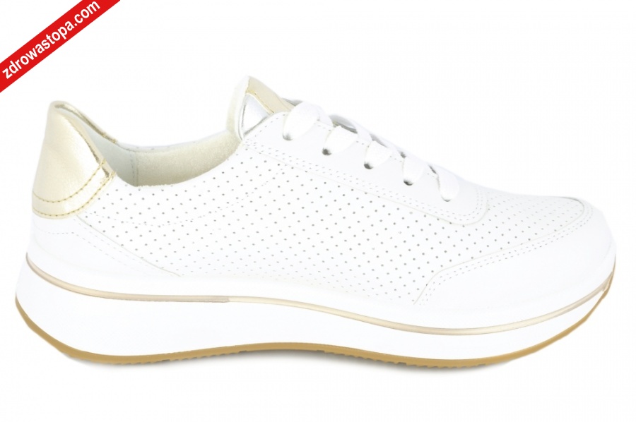 Typ: półbuty damskie Kolor: biały – weiss Materiał wierzchni: skóra naturalna Wnętrze buta: materiał obuwniczy Tęgość: H Dodatkowe informacje: Obuwie wykonane z bardzo miękkiej skóry naturalnej, sznurowane suwak z boku ułatwiający zakładanie. Spody lekkie i antypoślizgowe. Wyjmowana miękka wkładka pozwala na zastąpienie jej własną np: ortopedyczną. Wysokość podwyższenia pod piętą 45mm.