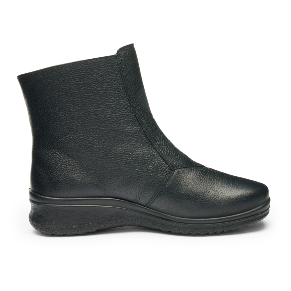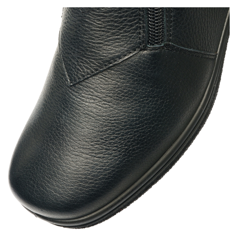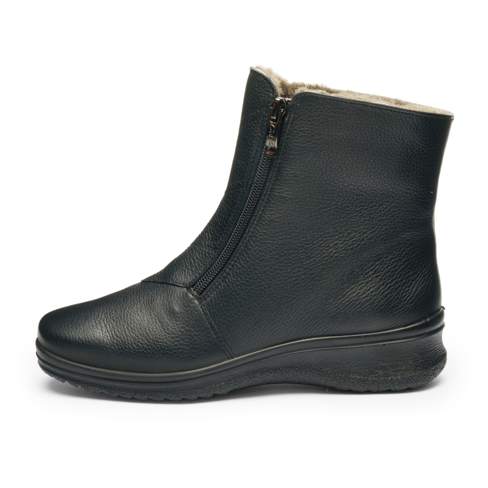 Typ: botki damskie Kolor: czarny – schwarz Materiał wierzchni: skóra naturalna Wnętrze buta: naturalne futerko Tęgość: H Dodatkowe informacje: Obuwie wykonane z bardzo miękkiej skóry naturalnej, suwak z boku ułatwiający zakładanie. Spody lekkie i antypoślizgowe. Wyjmowana miękka wkładka pozwala na zastąpienie jej własną np: ortopedyczną. Wysokość podwyższenia pod piętą 20mm.