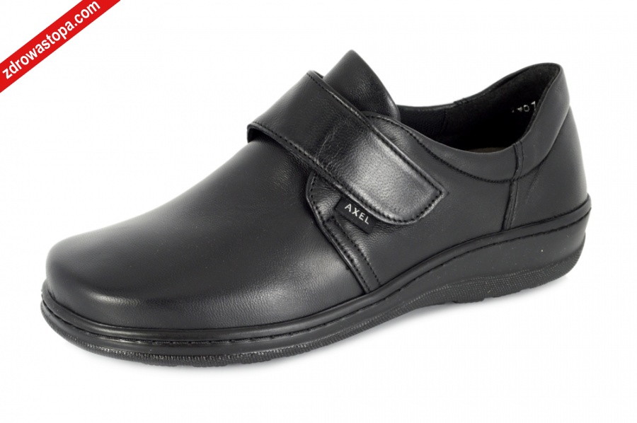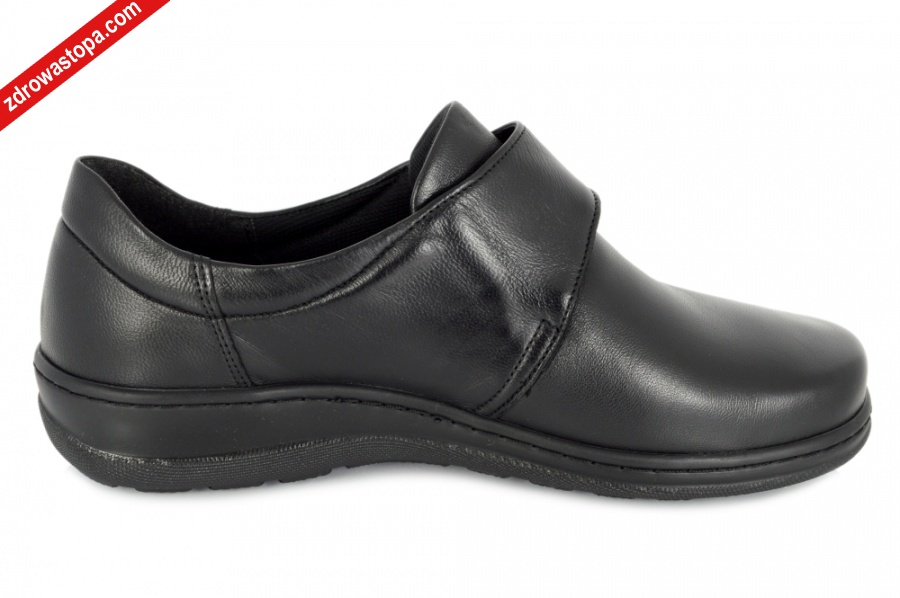 Typ: półbuty damskie Kolor: czarny Materiał wierzchni: skóra naturalna Wnętrze buta: materiał obuwniczy + wyjmowana wkładka Dodatkowe informacje: Obuwie zapinane na szeroką rzepę, wykonane z miękkiej skóry naturalnej lico. Spód szeroki antypoślizgowy. Wyjmowana profilowana wkładka którą można zastąpić na swoją.