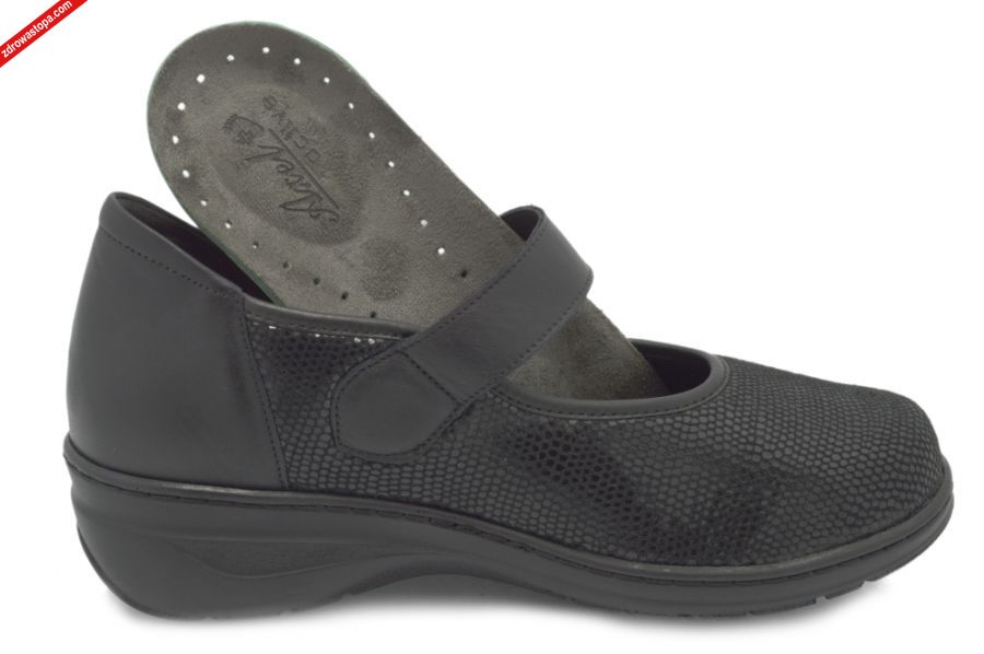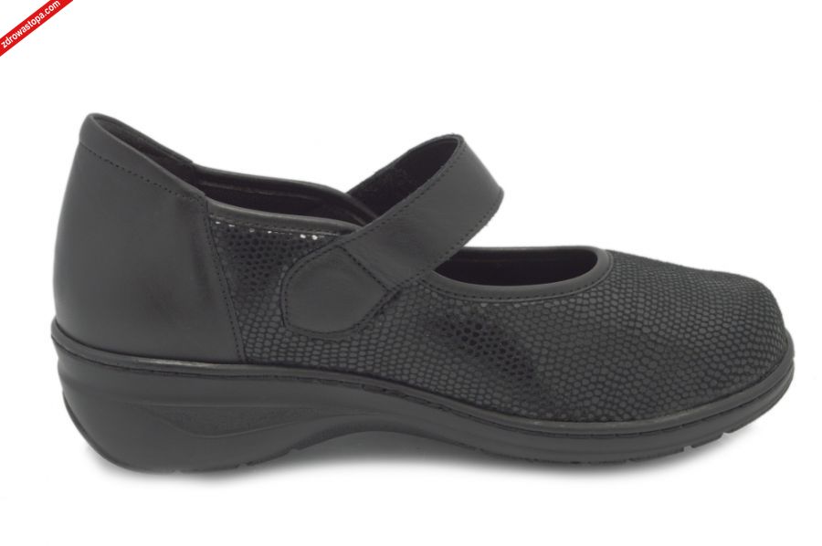 Typ: baleriny damskie Kolor: czarny Materiał wierzchni: materiał strechowy Wnętrze buta: materiał obuwniczy + wyjmowana wkładka Dodatkowe informacje: Obuwie bardzo miękkie i elastyczne, strechowy materiał dopasowuje się do stopy i nie uciska wrażliwych miejsc, środek wykończony materiałem z pianką. Spód szeroki antypoślizgowy. Obuwie zapinane na rzepę dobrze dopasowuje się do stopy. Wyjmowana profilowana wkładka którą można zastąpić na swoją.