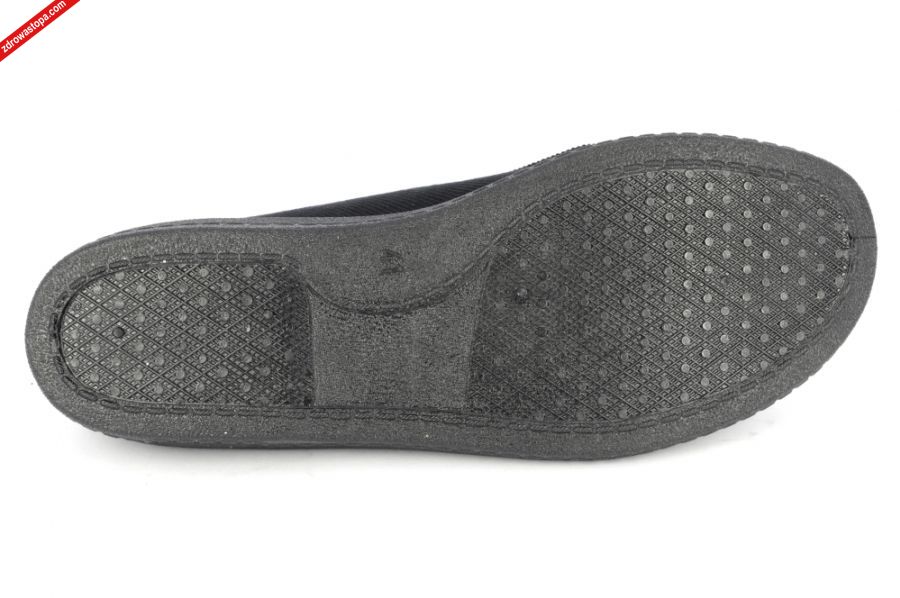 Typ: obuwie męskie tekstylne Kolor: czarny Materiał wierzchni: materiał włókienniczy (płótno) Wnętrze buta: materiał włókienniczy (płótno) Dodatkowe informacje: w podbiciu regulowane na dwie gumki, wykonane z oddychającego materiału