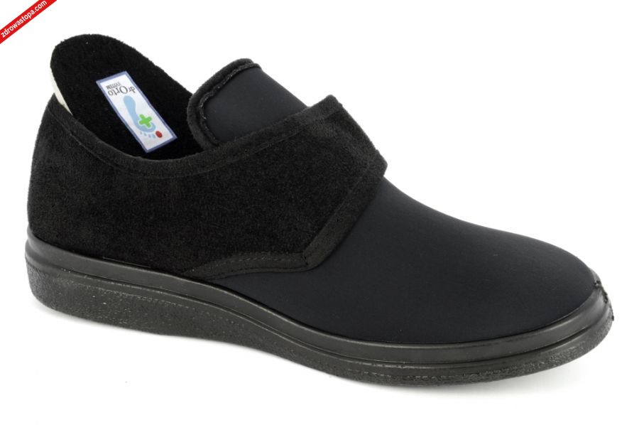 Typ: obuwie damskie Kolor: czarne Materiał wierzchni: obuwie tekstylne, materiał rozciągliwy – strecz – wysokiej jakości Wnętrze buta: naturalny materiał Dodatkowe informacje: Klasyczna kolorystyka, łatwa wzuwalność , wysokiej jakości materiały zapewniające stopom odpowiednią cyrkulację powietrza spełnią oczekiwania najbardziej wymagających odbiorców. Minimalna ilość przeszyć i łączeń, lekka sprężysta podeszwa z pianki poliuretanowej pochłania mikro-wstrząsy, posiadają wyjmowaną wkładkę, znakomite na halluxy (paluch koślawy, palce młoteczkowane), na stopy wrażliwe, mogą być stosowane, przez osoby z tzw. „zespołem stopy cukrzycowej”,