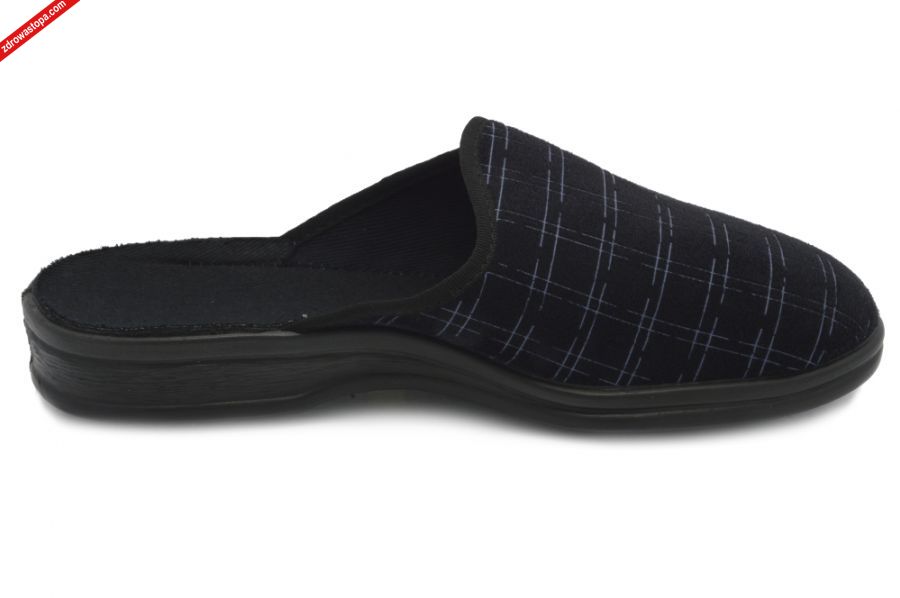 Typ: klapki męskie Kolor: czarny Materiał wierzchni: materiał tekstylny Wnętrze klapka: naturalny materiał Dodatkowe informacje: obuwie wykonane jest z wysokiej jakości, przewiewnych, naturalnych tkanin tekstylnych a lekkie, elastyczne spody PU zagwarantują wygodę i komfort użytkowania. Obuwie zostało zaprojektowane dla stóp o poszerzonych tęgości.