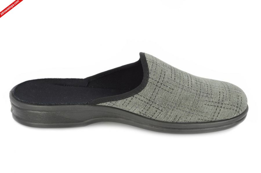 Typ: klapki męskie Kolor: szary Materiał wierzchni: materiał tekstylny Wnętrze klapka: naturalny materiał Dodatkowe informacje: obuwie wykonane jest z wysokiej jakości, przewiewnych, naturalnych tkanin tekstylnych a lekkie, elastyczne spody PU zagwarantują wygodę i komfort użytkowania. Obuwie zostało zaprojektowane dla stóp o poszerzonych tęgości.