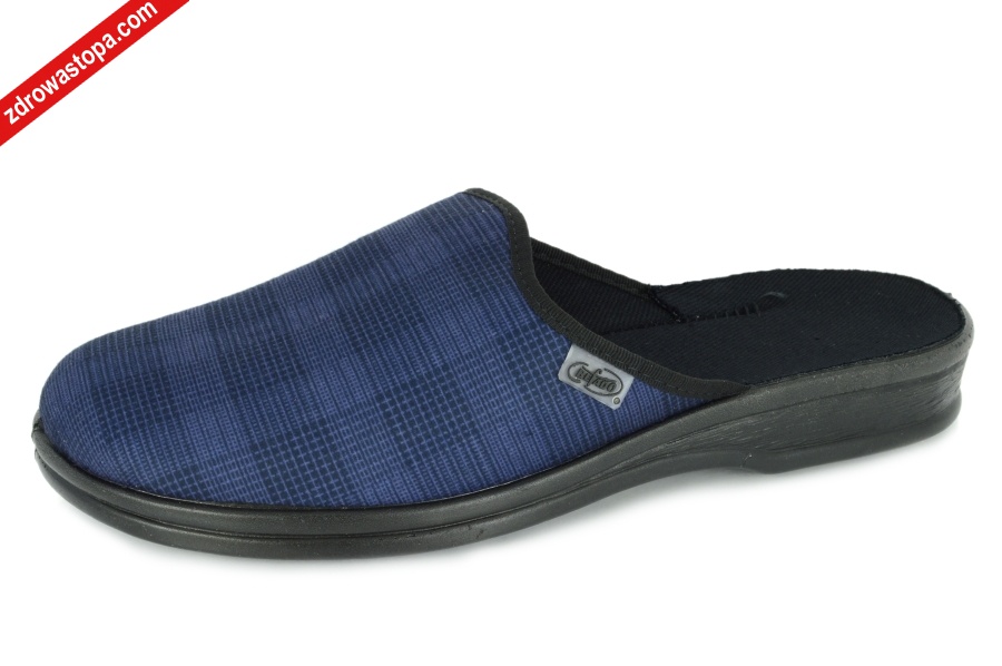 Typ: klapki męskie Kolor: granatowy Materiał wierzchni: materiał tekstylny Wnętrze klapka: naturalny materiał Dodatkowe informacje: obuwie wykonane jest z wysokiej jakości, przewiewnych, naturalnych tkanin tekstylnych a lekkie, elastyczne spody PU zagwarantują wygodę i komfort użytkowania. Obuwie zostało zaprojektowane dla stóp o poszerzonych tęgości.