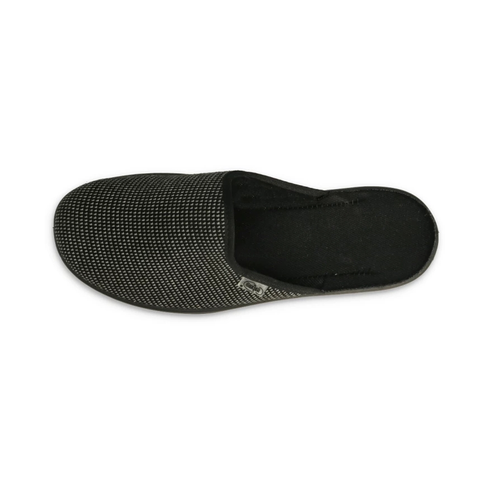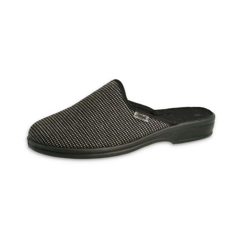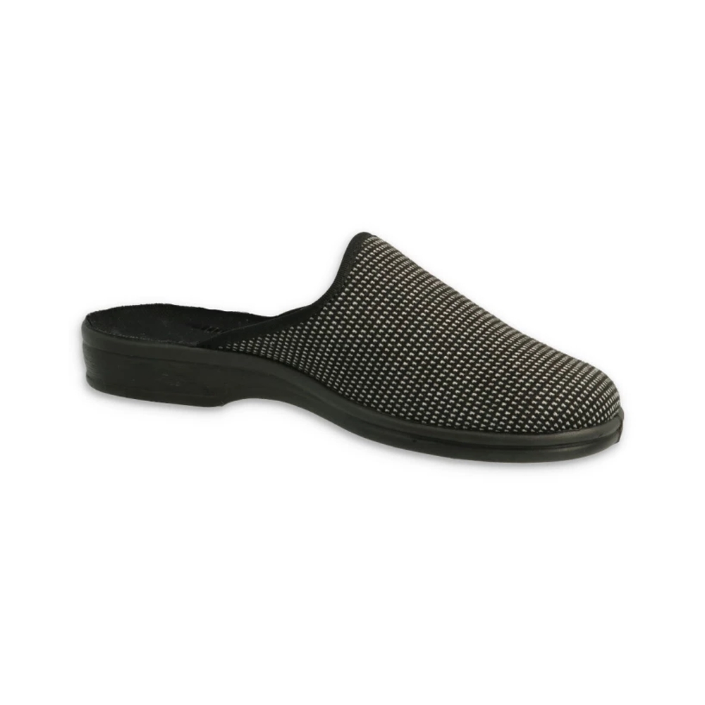 Typ: klapki męskie Kolor: czarny Materiał wierzchni: materiał tekstylny Wnętrze buta: naturalny materiał Dodatkowe informacje: obuwie wykonane jest z wysokiej jakości, przewiewnych, naturalnych tkanin tekstylnych a lekkie, elastyczne spody PU zagwarantują wygodę i komfort użytkowania. Obuwie zostało zaprojektowane dla stóp o poszerzonych tęgości.