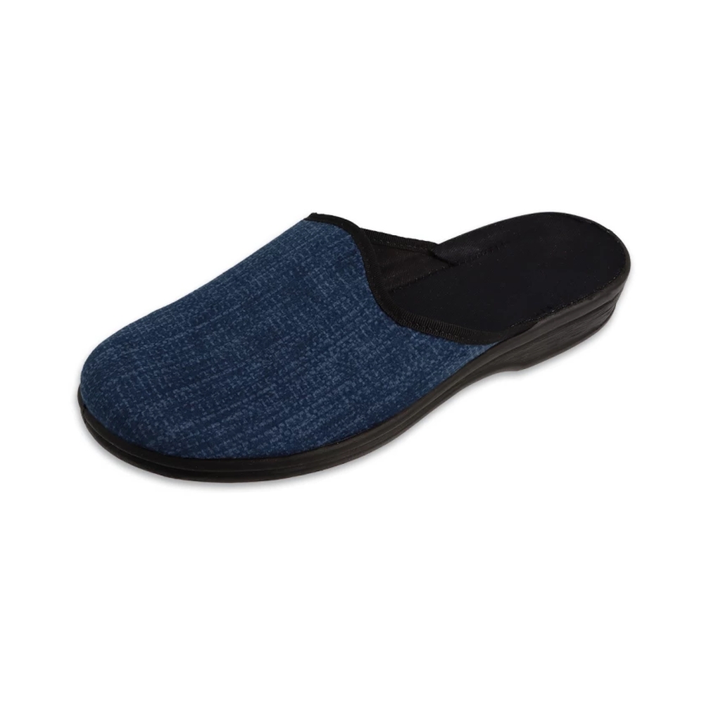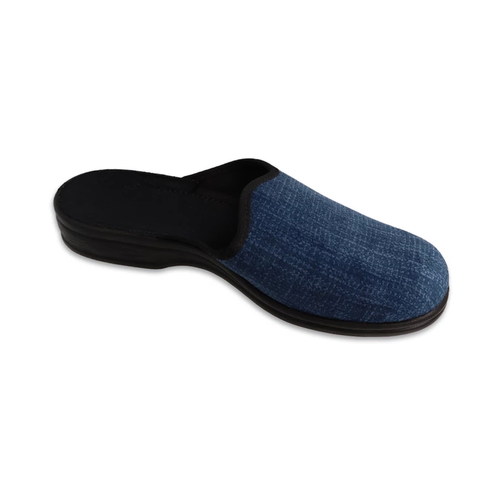 Typ: klapki męskie Kolor: granatowy Materiał wierzchni: materiał tekstylny Wnętrze buta: naturalny materiał Dodatkowe informacje: obuwie wykonane jest z wysokiej jakości, przewiewnych, naturalnych tkanin tekstylnych a lekkie, elastyczne spody PU zagwarantują wygodę i komfort użytkowania. Obuwie zostało zaprojektowane dla stóp o poszerzonych tęgości.