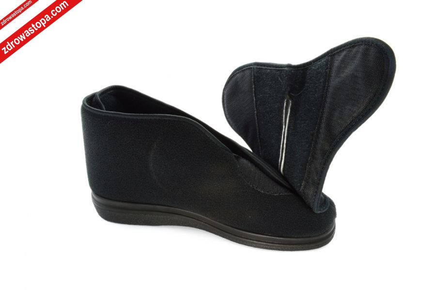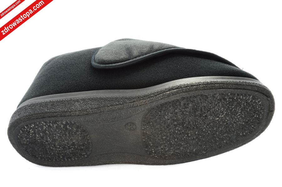 Dodatkowe informacje: obuwie tekstylne, materiał: microsidney-pianka-frotta wysokiej jakości, podwyższona tęgość (J) zapewnia odpowiednią przestrzeń w części palcowej, konstrukcja obuwia zapewnia łatwe jego wkładanie, minimalna ilość przeszyć i łączeń, dwie rzepy z przodu i jedna z tyłu pozwalają na optymalne dopasowanie do stopy (nawet tej obrzmiałej), lekka sprężysta podeszwa z pianki poliuretanowej pochłania mikro-wstrząsy, posiadają wyjmowaną wkładkę, znakomite na stopy wrażliwe, mogą być stosowane przez osoby z tzw. „zespołem stopy cukrzycowej”.