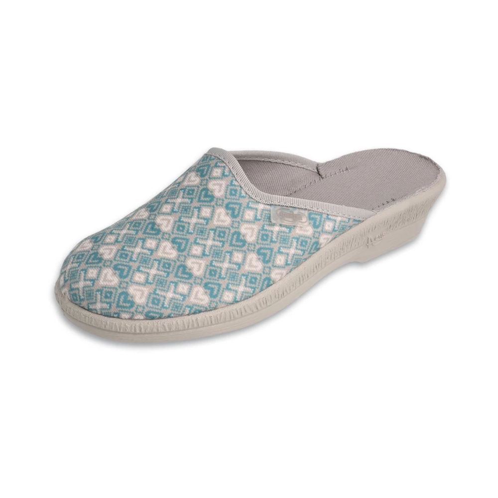 Typ: klapki damskie Kolor: turkusowy Materiał wierzchni: naturalne tkaniny tekstylne Wnętrze buta: naturalne tkaniny tekstylne Tęgość: H Dodatkowe informacje: Kapcie to rodzaj obuwia, który codziennie gości na stopach większości z nas. Dlatego wygoda i komfort noszenia to cechy, na które stawia Befado! Papcie wykonane są z naturalnych tkanin zapewniających stopom odpowiedni mikroklimat, co zapewnia higienę podczas ich noszenia. Bardzo lekkie, wyprofilowane i elastyczne spody sprawiają, że Twoja stopa będzie czuła się niezwykle komfortowo.