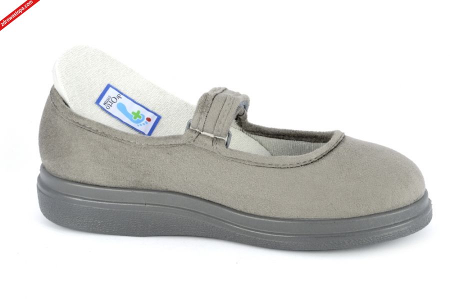 Typ: półbuty damskie Kolor: szary Materiał wierzchni: naturalne tkaniny tekstylne Wnętrze buta: naturalne tkaniny tekstylne Dodatkowe informacje: Propozycja lekkiego obuwia na wolny czas dla pań z problemami stóp. Jest to model o dużej tęgości. Kształt i wymiary wnętrza obuwia dostosowane do wymagań stóp o wysokiej wrażliwości, szeroki i wysoki czubek pozwala na swobodne ułożenie palców. Zminimalizowano ilość przeszyć i łączeń, które swoją wypukłością mogłyby uwierać stopy, dlatego może być użytkowane przez osoby ze stopą cukrzycową. Na wyściółkę zastosowano miękki i przyjemny dla stóp materiał SILBER (Ag) wykonany w specjalnej technologii w oparciu o jony srebra. Posiada on właściwości antybakteryjne, przeciwgrzybiczne i antyalergiczne, neutralizuje nieprzyjemne zapachy, absorbuje wilgoć gwarantując ochronę stóp podczas długotrwałej eksploatacji, zapewnia komfort termiczny – ułatwia odprowadzenie ciepła oraz utrzymanie temperatury ciała w optymalnej temperaturze 37 stopni Celsjusza.