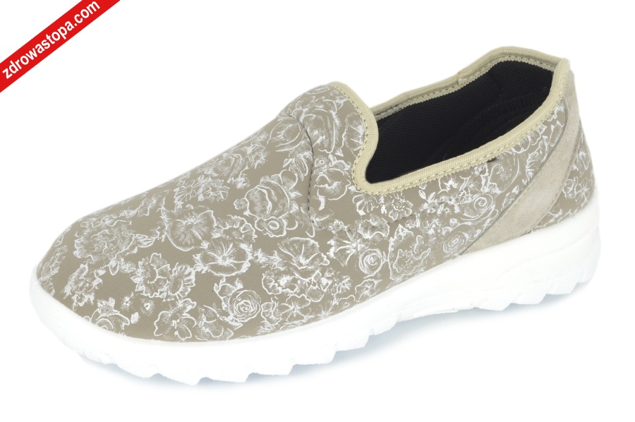 Typ: wsuwka damska Kolor: beżowy Materiał wierzchni: materiał tekstylny Wnętrze buta: naturalny materiał Dodatkowe informacje: Klasyczna kolorystyka, łatwa wsuwalność , materiał zapewniający stopom odpowiednią cyrkulację powietrza, spełnią oczekiwania najbardziej wymagających odbiorców. Minimalna ilość przeszyć i łączeń, lekka sprężysta podeszwa z pianki poliuretanowej pochłania mikro-wstrząsy