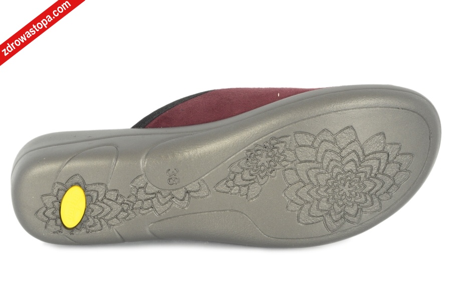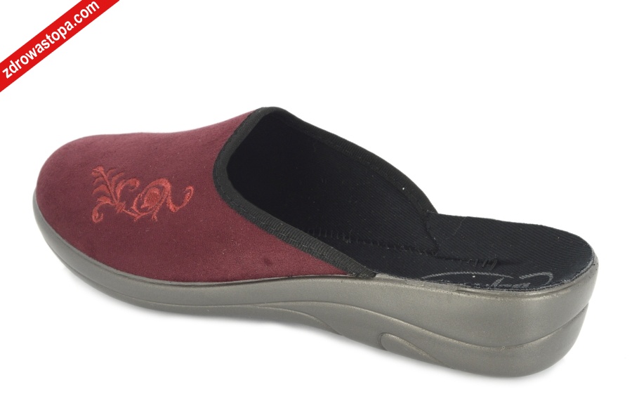 Typ: klapki damskie Kolor: bordowy Materiał wierzchni: naturalne tkaniny tekstylne Wnętrze buta: naturalne tkaniny tekstylne Dodatkowe informacje: Kolorystyka oraz aplikacje zgodne z najnowszymi trendami mody. Przeznaczone do użytku zarówno domowego jak i wyjściowego. Zastosowany na podeszwie system lekkiego i elastycznego PU sprawia, że podczas chodzenia amortyzowane są mikrowstrząsy, a dzięki odpowiedniej wysokości i wyprofilowaniu podeszwy utrzymana jest prawidłowa postawa ciała