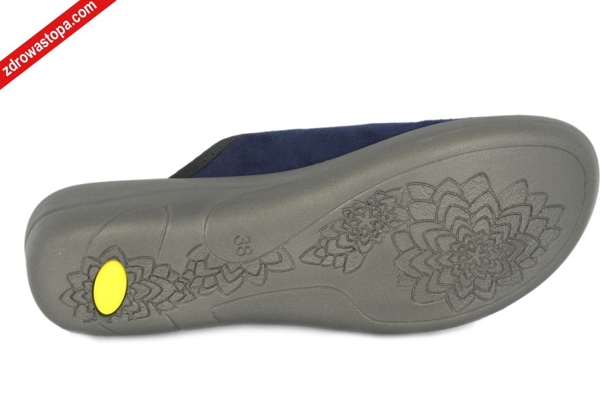 Typ: klapki damskie Kolor: granatowy Materiał wierzchni: naturalne tkaniny tekstylne Wnętrze buta: naturalne tkaniny tekstylne Dodatkowe informacje: Kolorystyka oraz aplikacje zgodne z najnowszymi trendami mody. Przeznaczone do użytku zarówno domowego jak i wyjściowego. Zastosowany na podeszwie system lekkiego i elastycznego PU sprawia, że podczas chodzenia amortyzowane są mikrowstrząsy, a dzięki odpowiedniej wysokości i wyprofilowaniu podeszwy utrzymana jest prawidłowa postawa ciała