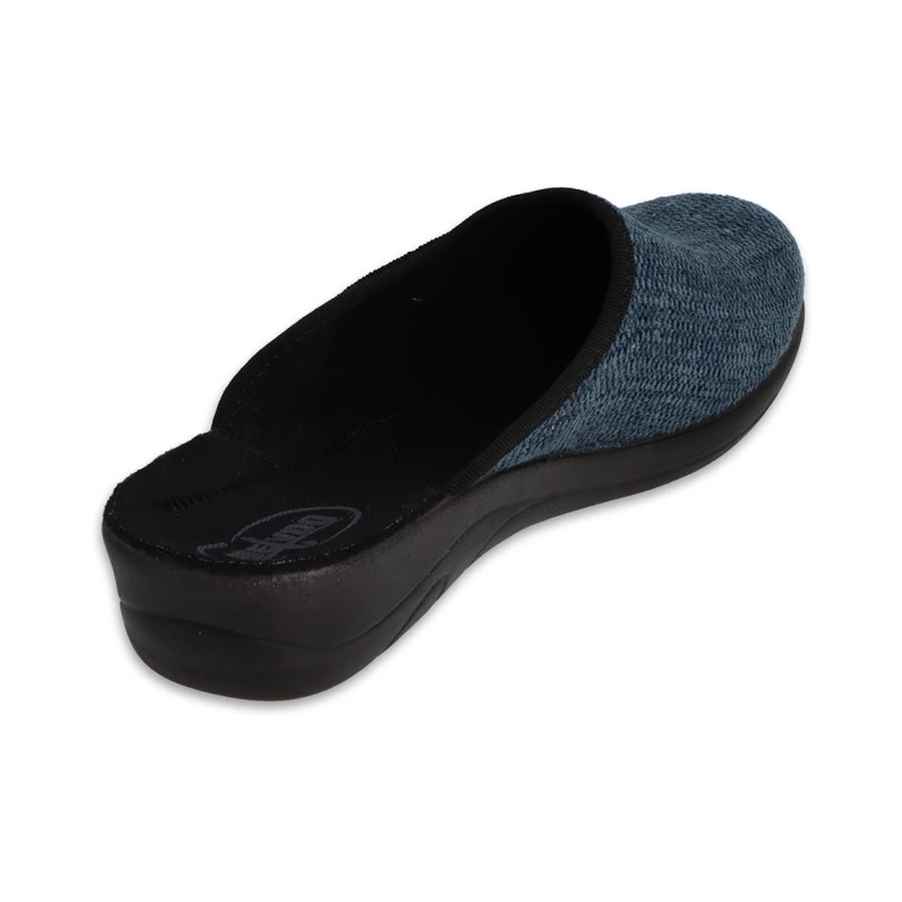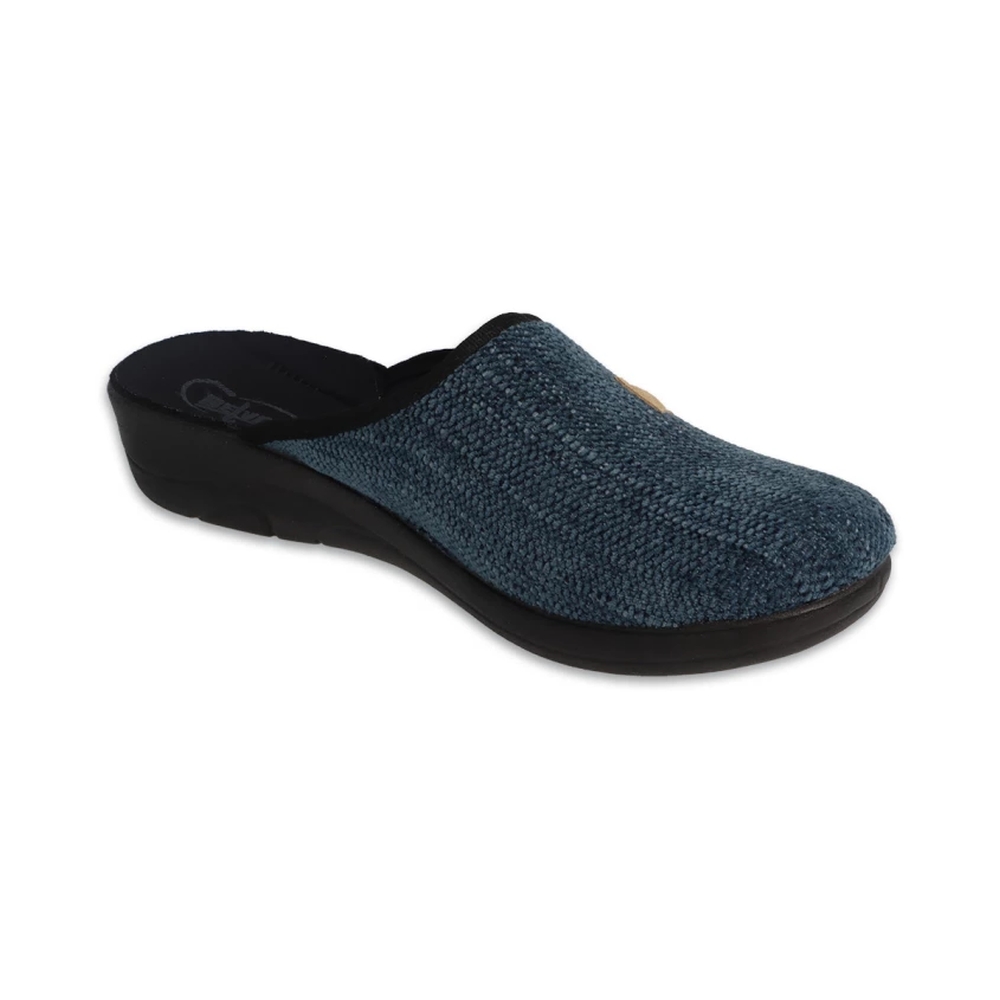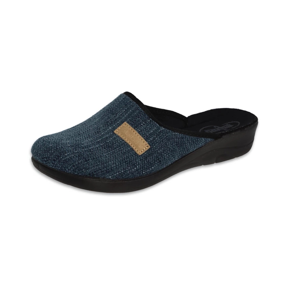 Typ: klapki damskie Kolor: niebieski Materiał wierzchni: naturalne tkaniny tekstylne Wnętrze buta: naturalne tkaniny tekstylne Dodatkowe informacje: Kolorystyka oraz aplikacje zgodne z najnowszymi trendami mody. Przeznaczone do użytku zarówno domowego jak i wyjściowego. Zastosowany na podeszwie system lekkiego i elastycznego PU sprawia, że podczas chodzenia amortyzowane są mikrowstrząsy, a dzięki odpowiedniej wysokości i wyprofilowaniu podeszwy utrzymana jest prawidłowa postawa ciała