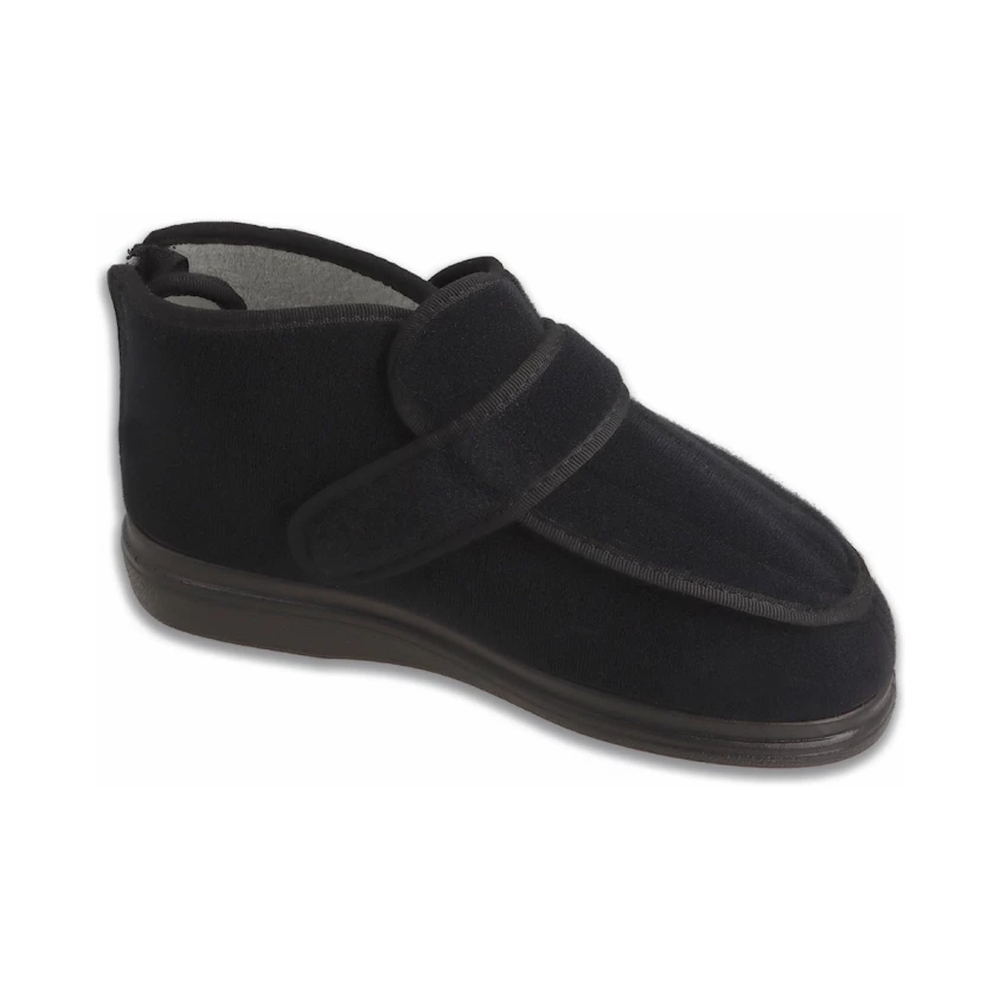Typ: obuwie damskie Kolor: czarny Materiał wierzchni: naturalny materiał Wnętrze buta: naturalny materiał Dodatkowe informacje: Obuwie bardziej specjalistyczne o wysokiej tęgości. Kształt i wymiary wnętrza obuwia dostosowane dla stóp o dużej wrażliwości. Zastosowane rozwiązania konstrukcyjno-technologiczne pozwalają na całkowite rozłożenie buta co w znacznym stopniu ułatwia jego dopasowanie i wzuwalność dla obolałych, zdeformowanych i opuchniętych stóp. Lekkie, gwarantujące osobom chorym wygodę i komfort użytkowania. Na wyściółkę zastosowano miękki i przyjemny dla stóp materiał SILBER (Ag) wykonany w specjalnej technologii w oparciu o jony srebra. Posiada on właściwości antybakteryjne, przeciwgrzybiczne i antyalergiczne, neutralizuje nieprzyjemne zapachy, absorbuje wilgoć gwarantując ochronę stóp podczas długotrwałej eksploatacji, zapewnia komfort termiczny – ułatwia odprowadzenie ciepła oraz utrzymanie temperatury ciała w optymalnej temperaturze 37 stopni Celsjusza.