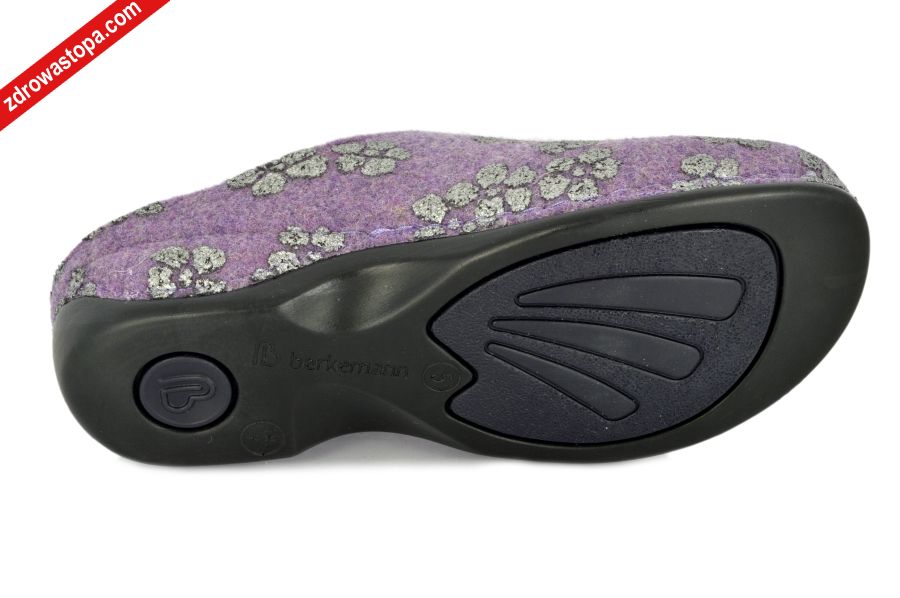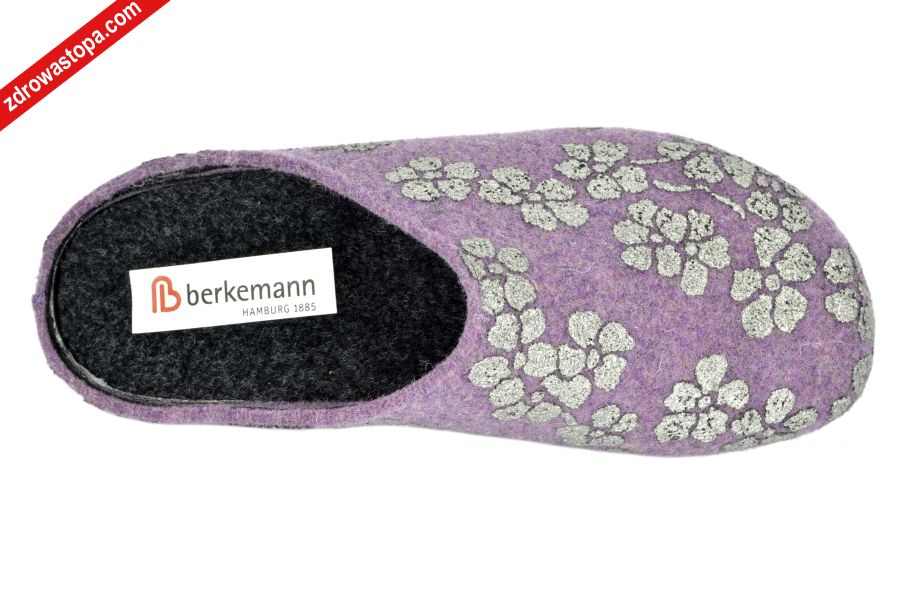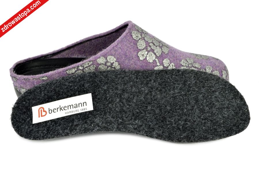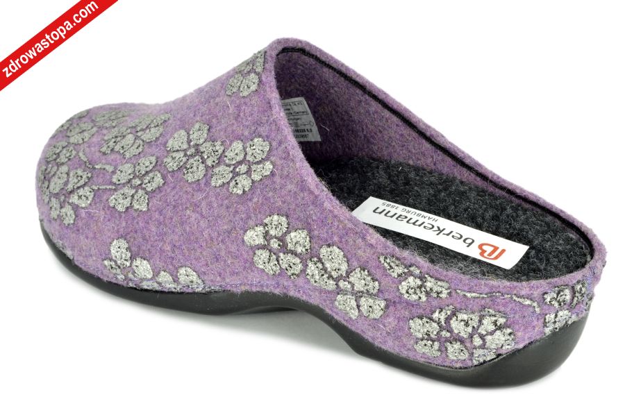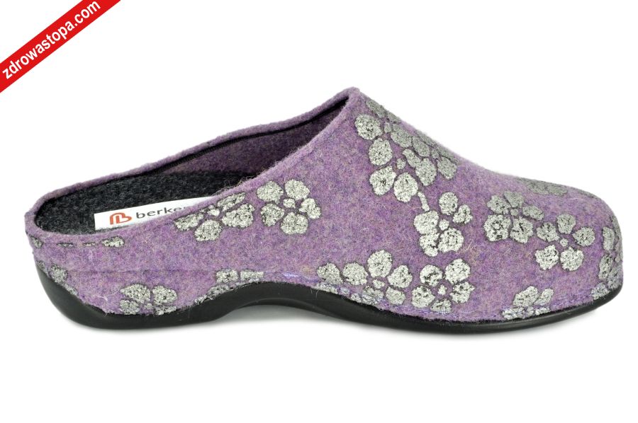 Typ: klapki damskie Kolor: wrzosowy Materiał wierzchni: materiał typu filc Wnętrze buta: materiał typu filc Tęgość: H Wysokość obcasu: 40 mm Dodatkowe informacje: Jest to obuwie niemieckiej firmy BERKEMANN istniejącej od 1885 roku z linii BERKOFLEX. Posiadają bardzo dobrze wyprofilowane wełniane wkładki wymienne. Dzięki wyjmowanej wkładce można stosować zamiennie wkładki ortopedyczne. Podeszwa lekka elastyczna nie ślizgająca się.