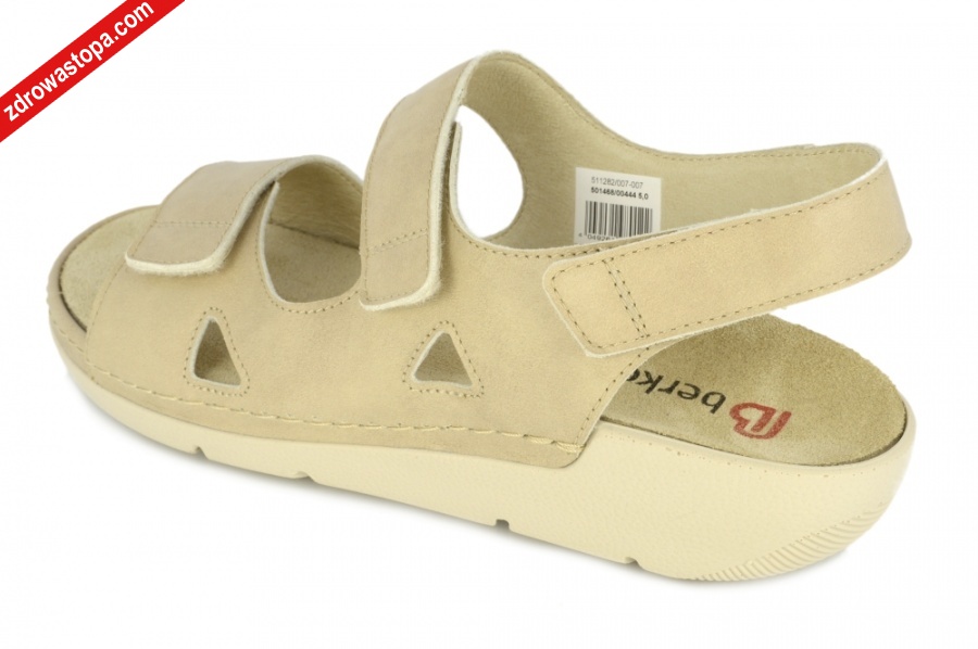 Jest to obuwie niemieckiej firmy BERKEMANN istniejącej od 1885 roku z linii BERKOFLEX. Posiadają bardzo dobrze wyprofilowane wkładki wymienne przystosowane do prania. Ponadto posiadają punkty na piętach amortyzujące mikrowstrząsy. Wyścielone skórą garbowania roślinnego. Oryginalna pięciofazowa wkładka w podeszwie wewnętrznej oraz zapięcia na 3 rzepy zapewniają wiele możliwości regulacji. Sprawiają, że obuwie dobrze trzyma się na nodze i zapewnia najwyższy komfort noszenia. Dzięki wyjmowanej wkładce można stosować zamiennie wkładki ortopedyczne. Podeszwa lekka elastyczna nie ślizgająca się.