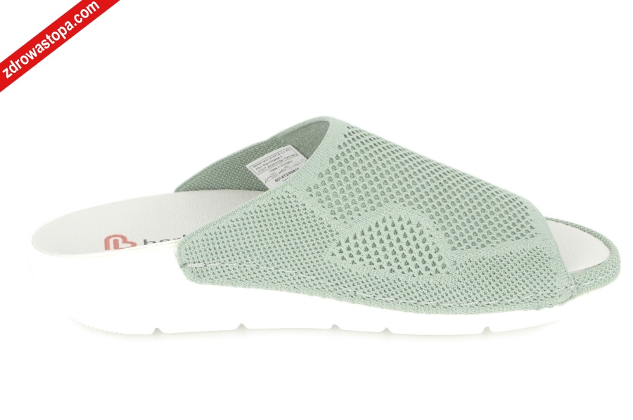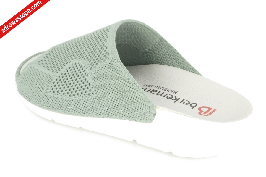 Typ: klapki damskie Kolor: zielony Materiał wierzchni: naturalny rozciągliwy materiał Wnętrze buta: naturalny rozciągliwy materiał Tęgość: H Dodatkowe informacje: Jest to obuwie niemieckiej firmy BERKEMANN istniejącej od 1885 roku z linii BERKOFLEX. Posiadają bardzo dobrze wyprofilowane wkładki wymienne przystosowane do prania. Ponadto posiadają punkty na piętach amortyzujące mikrowstrząsy. Wyścielone skórą garbowania roślinnego. Elastyczny materiał sprawia, że obuwie dobrze trzyma się na nodze i zapewnia najwyższy komfort noszenia. Dzięki wyjmowanej wkładce można stosować zamiennie wkładki ortopedyczne. Podeszwa lekka elastyczna nie ślizgająca się.