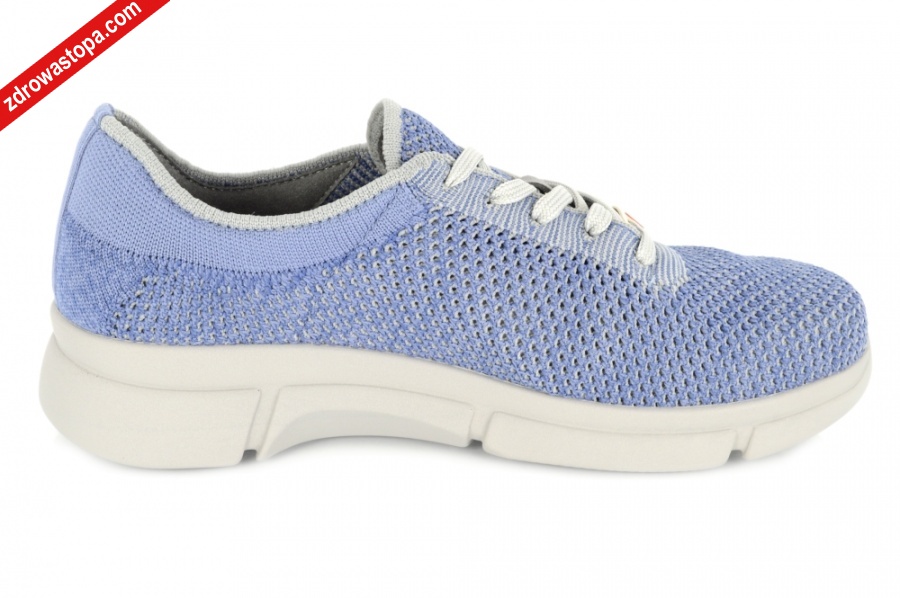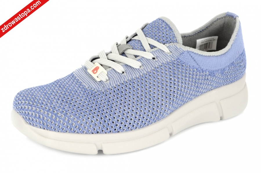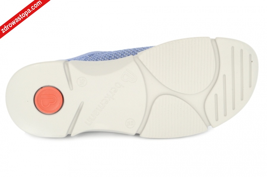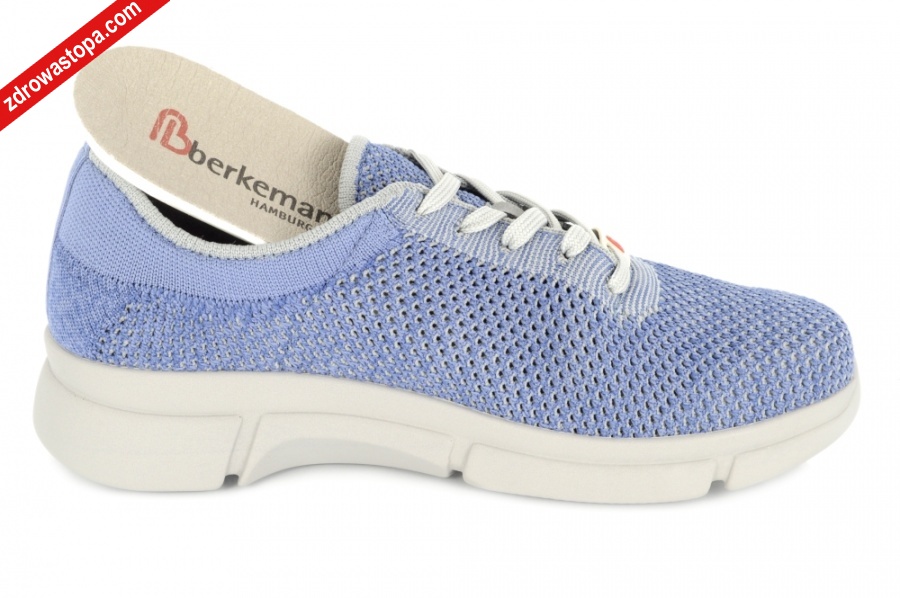 Typ: półbuty damskie BERKOFLEX Kolor: niebieski – mittelblau Materiał wierzchni: naturalny rozciągliwy materiał tekstylny Wnętrze buta: skórzana wkładka i rozciągliwy materiał tekstylny Tęgość: H, K Dodatkowe informacje: Jest to obuwie niemieckiej firmy BERKEMANN istniejącej od 1885 roku. Posiadają bardzo dobrze wyprofilowane wkładki wymienne, ponadto posiadają punkty na piętach amortyzujące mikrowstrząsy. Wyścielone skórą garbowania roślinnego. Rozciągliwy i przewiewny materiał tekstylny zapewnia idealne dopasowanie do stopy bez ucisku wrażliwych miejsc. Obuwie dobrze trzyma się na nodze i zapewnia najwyższy komfort noszenia. Dzięki wyjmowanej wkładce można stosować zamiennie wkładki ortopedyczne. Podeszwa lekka elastyczna nie ślizgająca się.