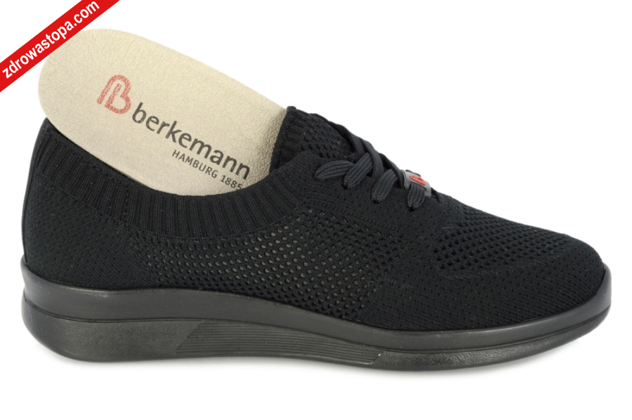Typ: półbuty damskie BERKOFLEX Kolor: czarny – schwarz Materiał wierzchni: naturalny rozciągliwy materiał tekstylny Wnętrze buta: skórzana wkładka i rozciągliwy materiał tekstylny Tęgość: H, K Dodatkowe informacje: Jest to obuwie niemieckiej firmy BERKEMANN istniejącej od 1885 roku. Posiadają bardzo dobrze wyprofilowane wkładki wymienne, ponadto posiadają punkty na piętach amortyzujące mikrowstrząsy. Wyścielone skórą garbowania roślinnego. Rozciągliwy i przewiewny materiał tekstylny zapewnia idealne dopasowanie do stopy bez ucisku wrażliwych miejsc. Obuwie dobrze trzyma się na nodze i zapewnia najwyższy komfort noszenia. Dzięki wyjmowanej wkładce można stosować zamiennie wkładki ortopedyczne. Podeszwa lekka elastyczna nie ślizgająca się.
