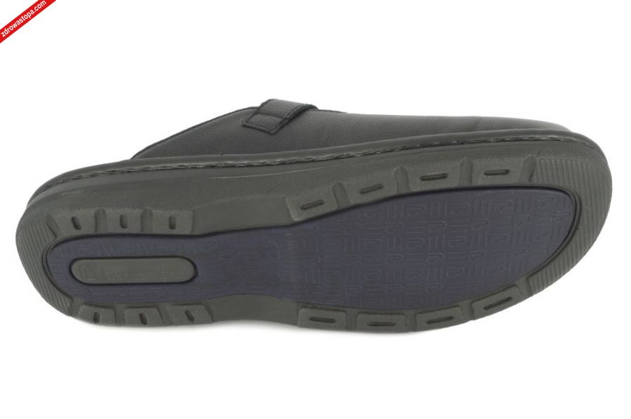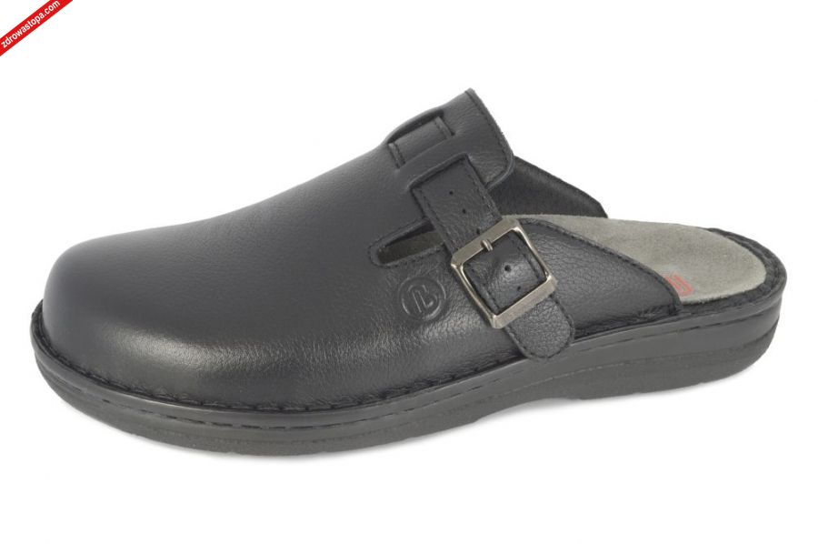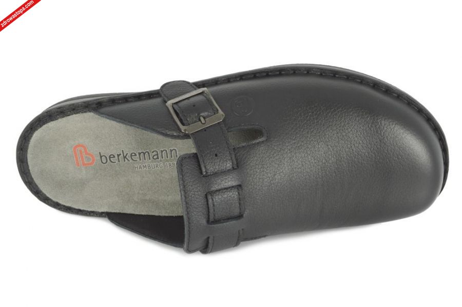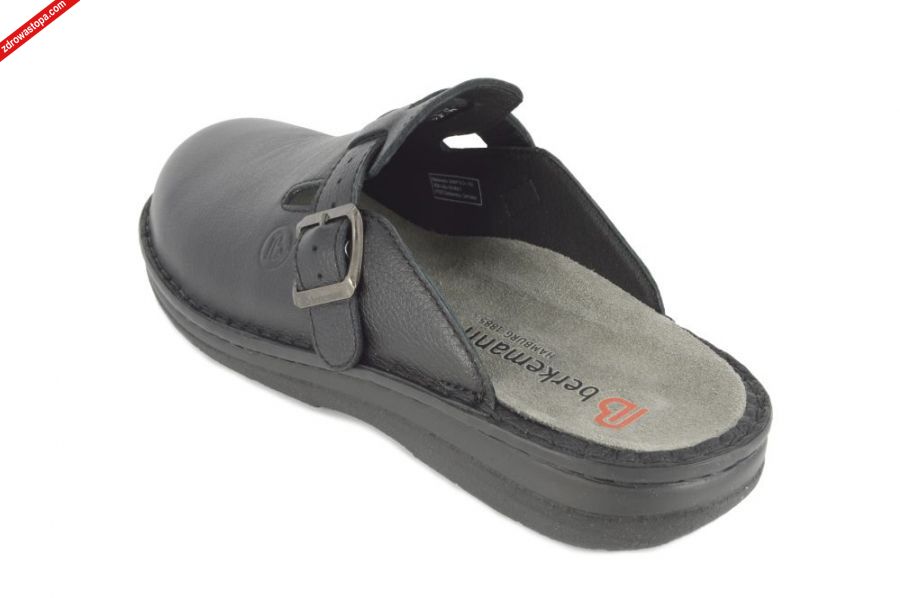 Typ: klapki męskie Kolor: czarny Materiał wierzchni: skóra naturalna Wnętrze buta: skóra/materiał obuwniczy Tęgość: H, K Dodatkowe informacje: Jest to najnowsze obuwie niemieckiej firmy BERKEMANN istniejącej od 1885 roku. Posiadają bardzo dobrze wyprofilowane wkładki wymienne. Wyścielone skórą garbowania roślinnego. Oryginalna pięciofazowa wkładka w podeszwie wewnętrznej oraz zapięcie na klamerkę zapewnia dobrą regulację na wysokie podbicie. Sprawiają, że obuwie dobrze trzyma się na nodze i zapewnia najwyższy komfort noszenia. Dzięki wyjmowanej wkładce można stosować zamiennie wkładki ortopedyczne. Podeszwa lekka elastyczna nie ślizgająca się.