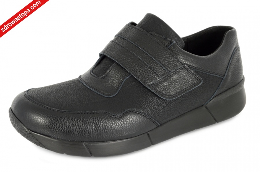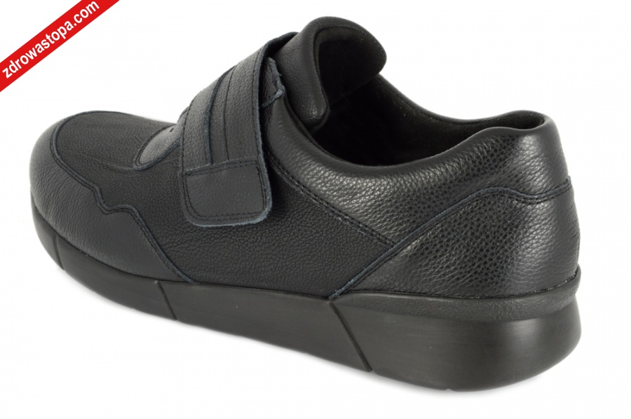 Dodatkowe informacje: specjalna linia obuwia męskiego o modnym wzornictwie, na rzepę, łatwa wsuwalność nawet na wysokie podbicie. Z przodu wierzch obuwia wykonany ze skóry połączonej z strechem, który dopasowuje się do stopy. Gruba elastyczna podeszwa idealnie amortyzująca drgania, antypoślizgowe podeszwy, dają komfort i stabilność chodzenia. Wyjmowana wkładka skórzana garbowania roślinnego, daje możliwość wymiany na swoją specjalną wkładkę.