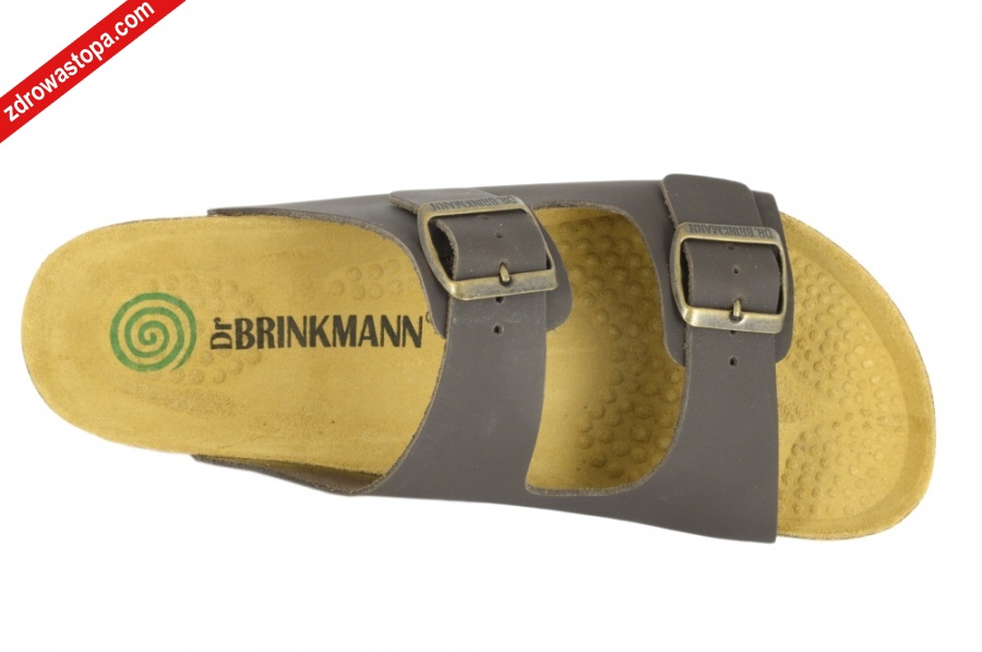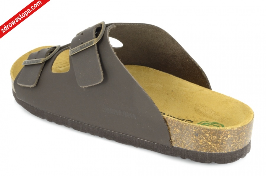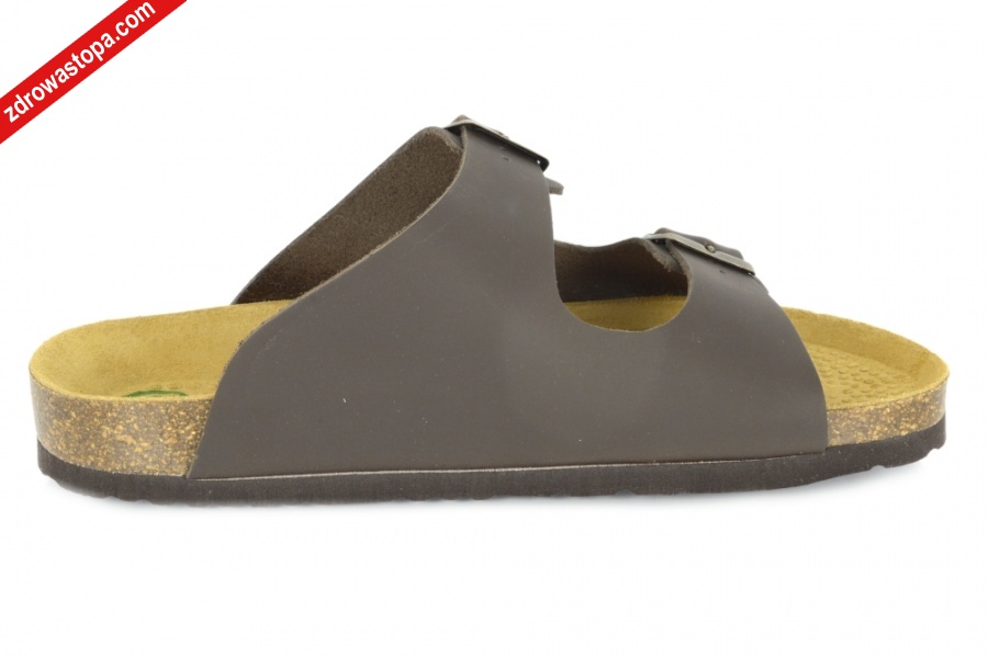 Typ: klapki Kolor: brązowy – braun Materiał wierzchni: skóra nubuk woskowan Wnętrze buta: całość ze skóry Wnętrze klapka: wyprofilowana wkładka skórzana na korku Dodatkowe informacje: cholewka skórzana, nubukowa, super wyprofilowane ortopedyczne klapki męskie, regulowane na dwa paski z klamerką.