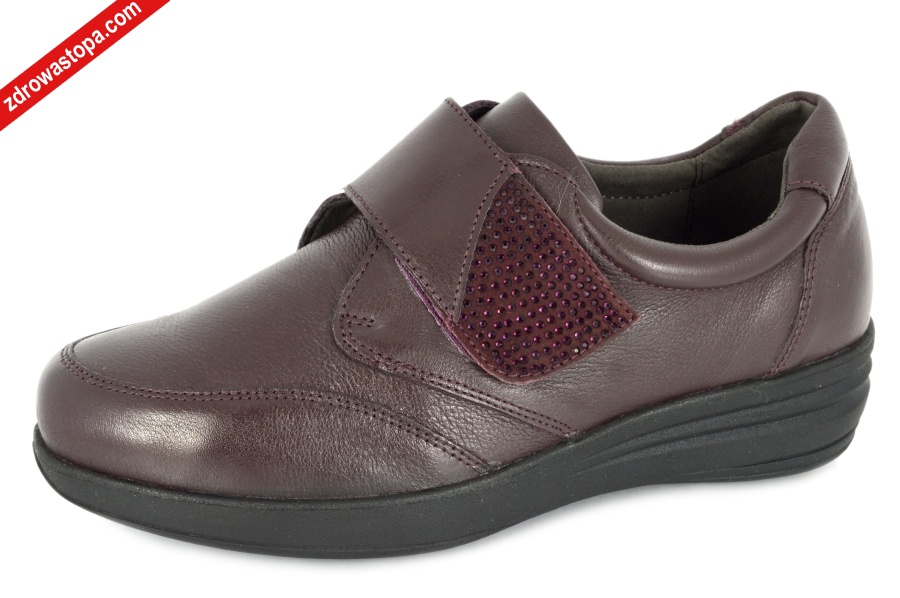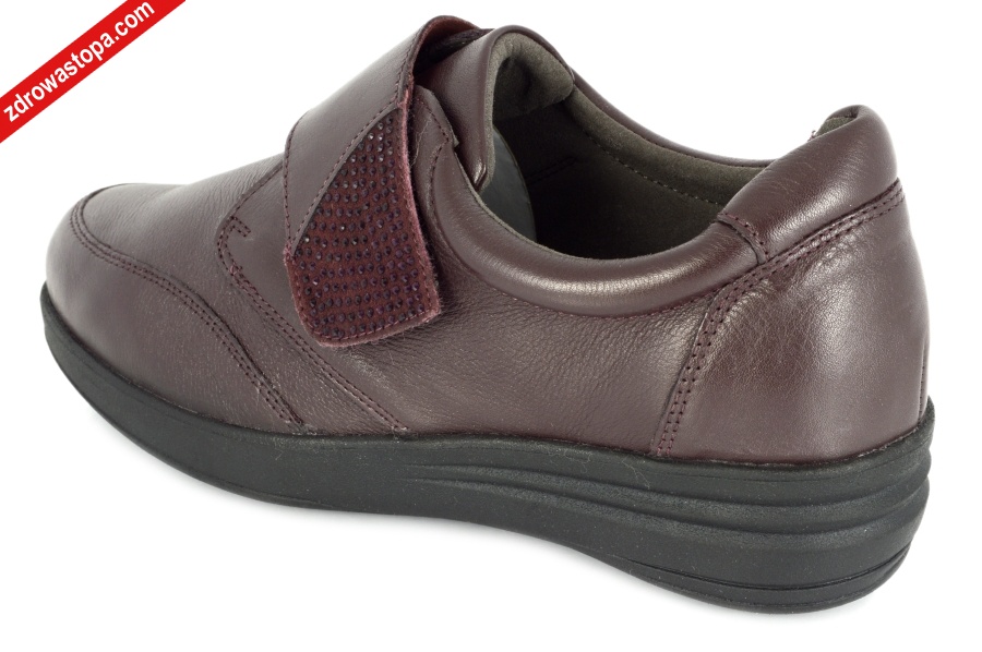 Typ: półbuty damskie Kolor: bordowy – bordeaux comb Materiał wierzchni: miękka skóra naturalna Wnętrze buta: wyjmowana wkładka, materiał obuwniczy Tęgość: H Dodatkowe informacje: Lekkie i elastyczne półbuty wykonane z bardzo miękkiej skóry. Wyjmowana wkładka posiada system ” onAIR ” bazuje na zaczerpniętej z natury konstrukcji plastra miodu, gwarantuje szybkie odprowadzenie wilgoci, przepływ wewnątrz obuwia oraz doskonałą amortyzacje. Szeroka rzepa pozwala na dobre dopasowanie do stopy.