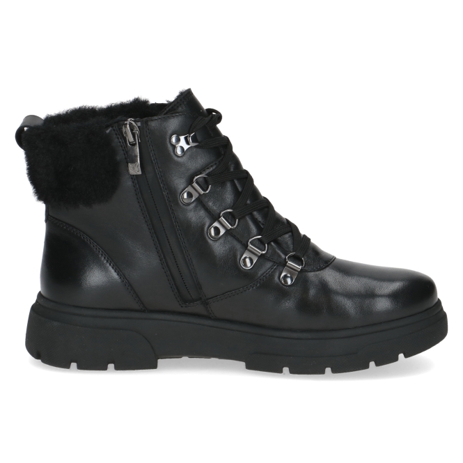 Typ: botki damskie Kolor: czarny Materiał wierzchni: skóra naturalna z membraną TEX Wnętrze buta: miękkie futerko Dodatkowe informacje: Wygodne zakładanie dzięki suwakowi z boku, sznurówki zapewniają dobre dopasowanie do stopy , ocieplane futerkiem. Wyjmowana wkładka posiada system ” onAIR ” bazuje na zaczerpniętej z natury konstrukcji plastra miodu, gwarantuje szybkie odprowadzenie wilgoci, przepływ wewnątrz obuwia oraz doskonałą amortyzacje, spody antypoślizgowe.