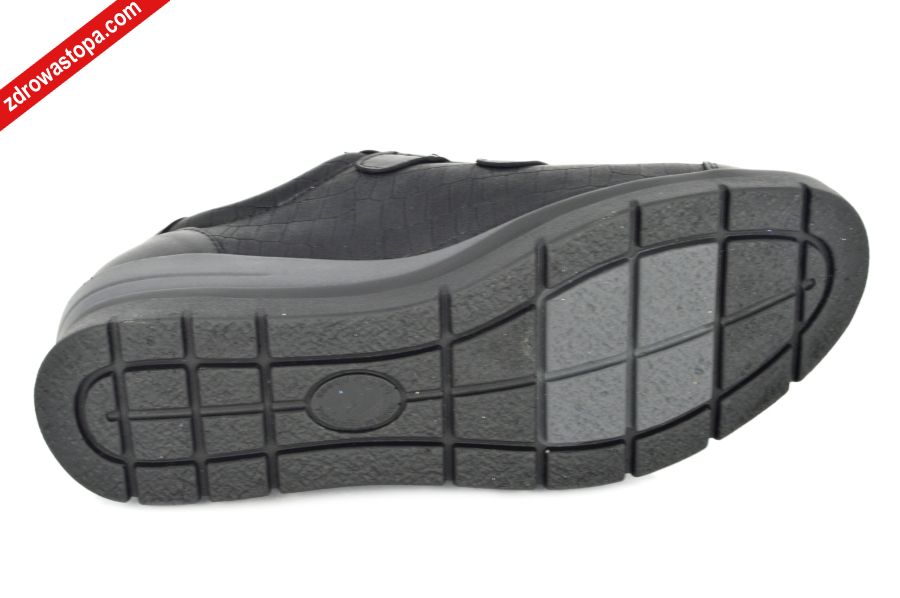 Typ: półbuty damskie Kolor: schwarz – czarny Materiał wierzchni: skóra naturalna i ekologiczna Wnętrze buta: wkładka skórzana i miękki materiał obuwniczy Dodatkowe informacje: Obuwie zapinane na dwie rzepy pozwala na dobre dopasowanie do stopy, wykonane z miękkiej skóry naturalnej lico . Bardzo lekkie, posiadające wyjmowaną wkładkę, elastyczne spody i antypoślizgową podeszwę.