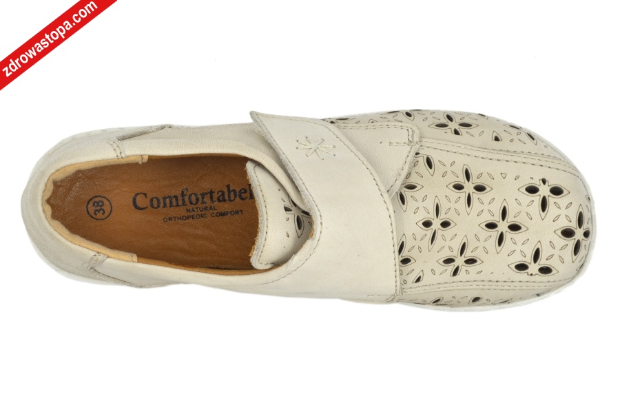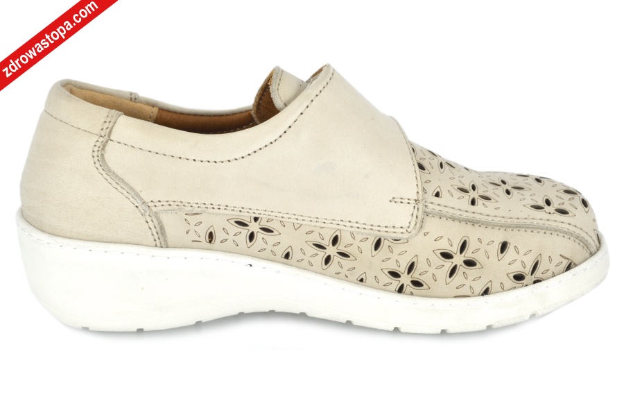 Typ: półbuty damskie Kolor: beżowy – camel Materiał wierzchni: naturalna skóra lico Wnętrze buta: całość ze skóry naturalnej Dodatkowe informacje: dobre dopasowanie do stopy zapewniają pasek z rzepem na podbiciu, dziurki z przodu ułatwiją „oddychanie” stopy, wyjmowana miękka wkładka. Wykonane z bardzo miękkiej skóry. Obuwie bardzo lekkie.