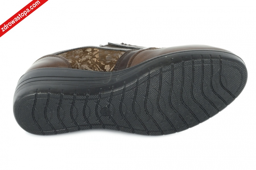 Typ: półbuty damskie Kolor: brązowy Materiał wierzchni: skóra naturalna Wnętrze buta: całość z skóry naturalnej Dodatkowe informacje: obuwie wsuwane, gumka dobrze dopasowują się do stopy, suwak ułatwiający zakładanie, miękka wkładka. Spody lekkie, bardzo elastyczna amortyzujące drgania.
