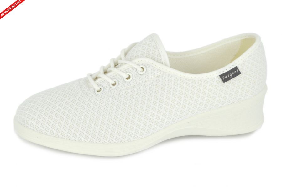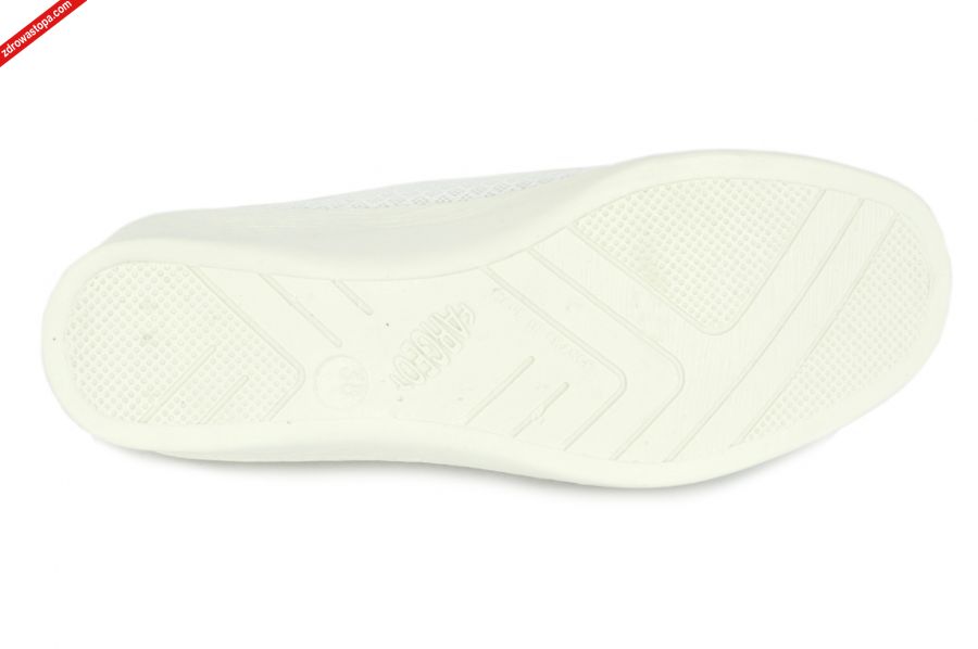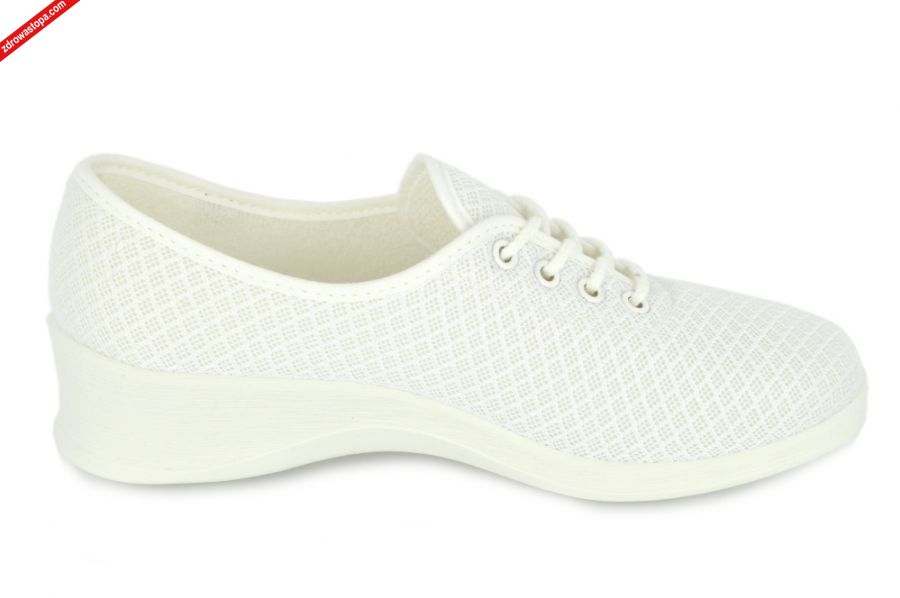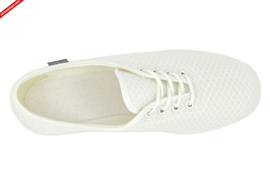 Typ: półbuty damskie tekstylne Kolor: białe – blanc Materiał wierzchni: naturalny materiał Wnętrze buta: naturalny materiał Kraj pochodzenia: Francja Dodatkowe informacje: Obuwie wykonane z przewiewnej siateczki, środek wykończony frottą. Lekka i elastyczna podeszwa. Wysokość klinu: 40 mm.