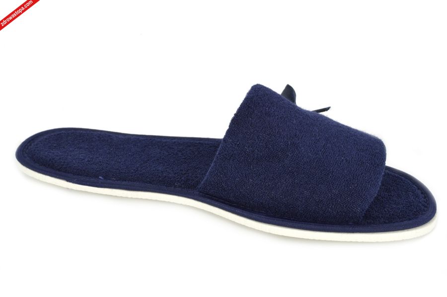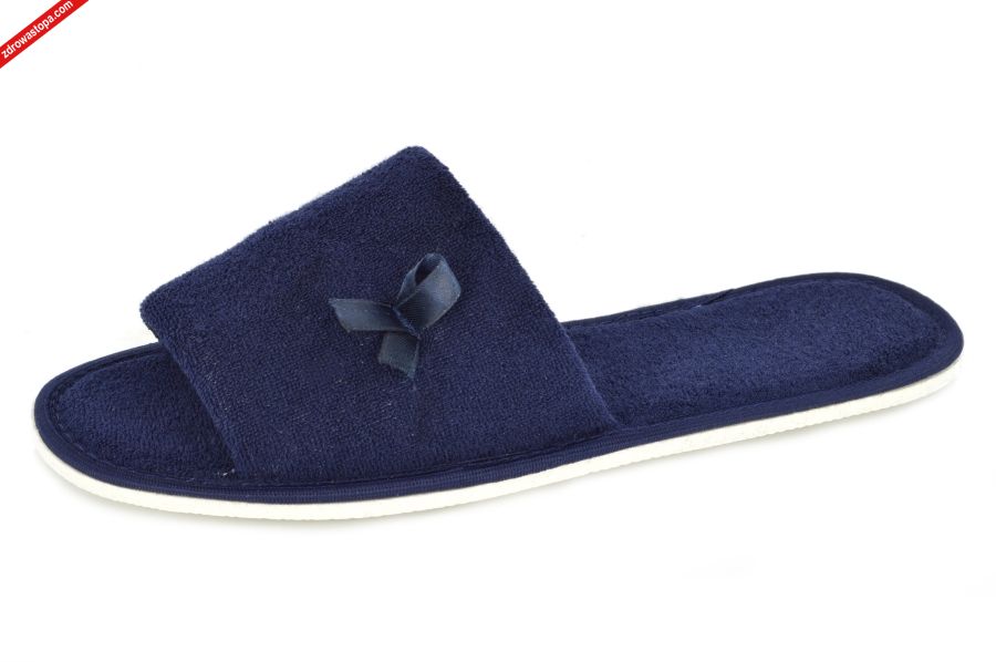 Typ: kapcie damskie Kolor: granatowy Materiał wierzchni/Wnętrze buta: naturalny materiał Spód: styrogum lekki antypoślizgowy Dodatkowe informacje: bardzo trwałe wygodne kapcie, wykonane z naturalnych materiałów do codziennego użytku.