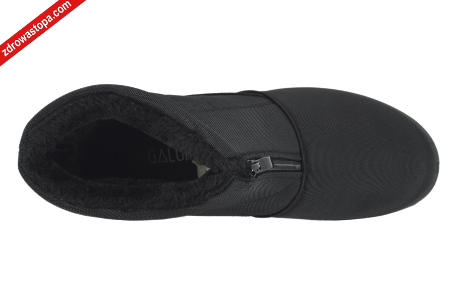 Typ: botki damskie Kolor: czarny Materiał wierzchni: tkanina wodoodporna Wnętrze buta: ocieplane w środku Dodatkowe informacje: Zapinane na suwak, wysokość klinu: 30 mm, wysokość cholewki: 15 cm