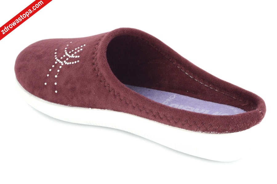 Typ: kapcie damskie Kolor: śliwkowy Materiał wierzchni/Wnętrze buta: naturalny materiał Tęgość: H + Dodatkowe informacje: Nowoczesna forma kapcia, można włożyć własną wkładkę. Spód lekki profilowany z poliuretanu. Użycie wyżej wymienionych surowców wpływa na wysoki komfort użytkowania.