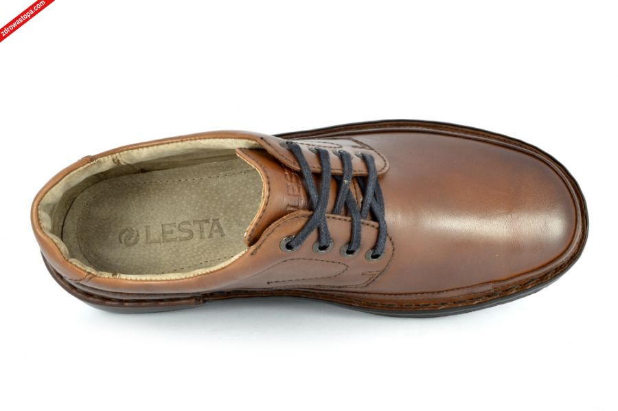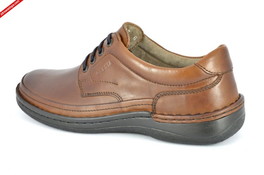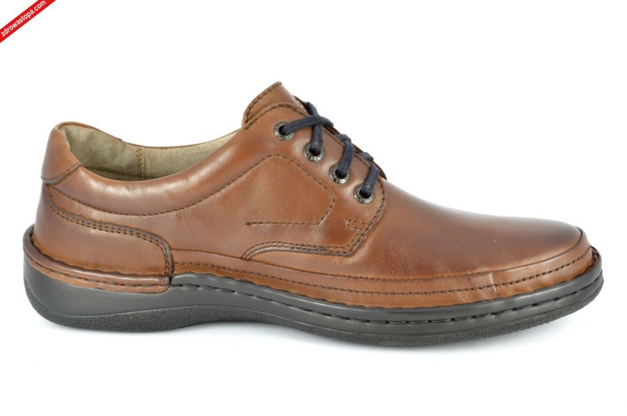 Typ: półbuty męskie Kolor: brązowy Materiał wierzchni: skóra naturalna lico Wnętrze buta: skóra naturalna i materiał obuwniczy Dodatkowe informacje: półbuty męskie sznurowane, wykonane z bardzo miękkiej skóry licowej, wkładka skórzana, środek cały ze skóry plus materiał obuwniczy w przedniej części buta.
