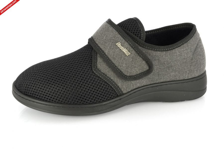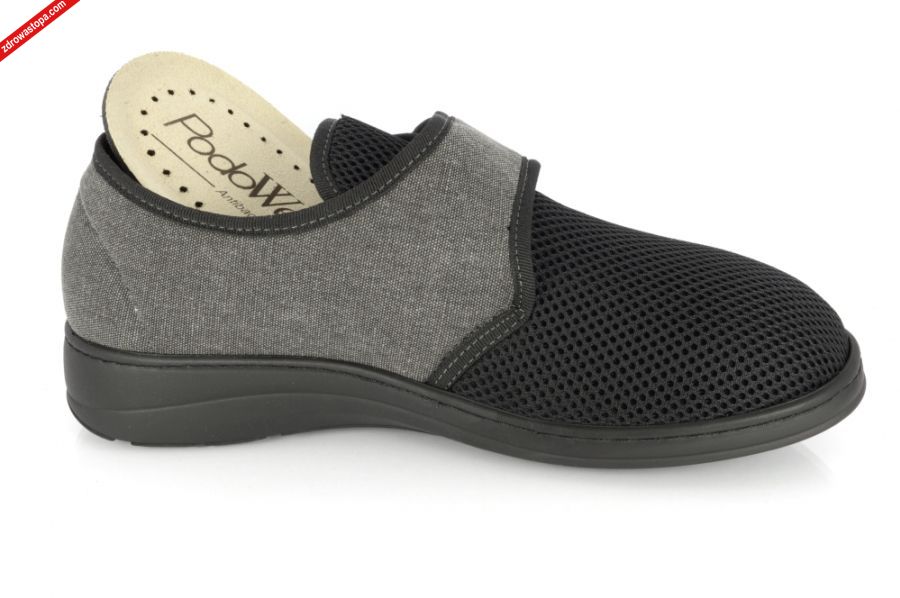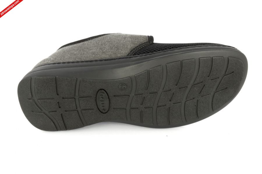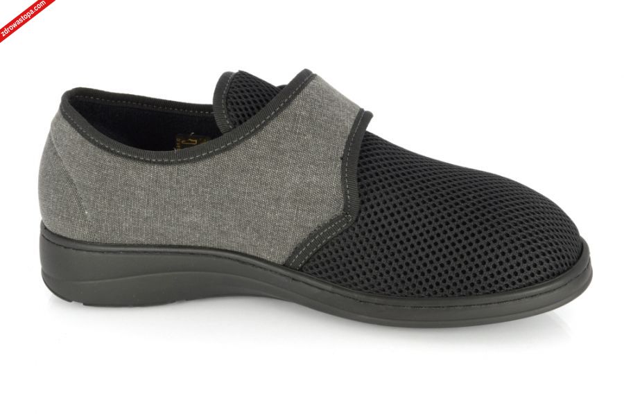 Typ: obuwie męskie tekstylne Kolor: czarny – noir Materiał wierzchni: naturalna bawełna Wnętrze buta: naturalna bawełna Dodatkowe informacje: obuwie wykonane z naturalnej przewiewnej bawełny, przód obuwia tkanina elastyczna wzmocniona siateczką dająca dodatkowe oddychanie dla stopy. Obuwie tekstylne zapinane na rzepę. Wkładkę można prać w pralce lub ręcznie w temparaturze do 30st.C