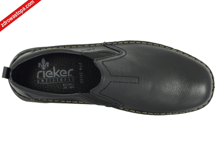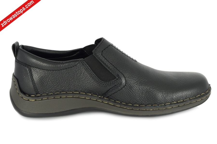 Typ: półbuty męskie Kolor: czarny – schwarz Tęgość: H Materiał wierzchni: naturalna skóra Wnętrze buta: skóra naturalna i miękka wyściółka Dodatkowe informacje: obuwie wsuwane dobre dopasowanie do stopy dzięki gumkom po bokach, bardzo elastyczne spody absorbujące drgania, antypoślizgowe. Obuwie poszerzone w palcach nadające się na większą tęgość stopy.