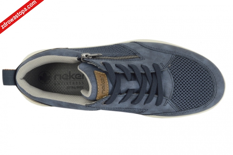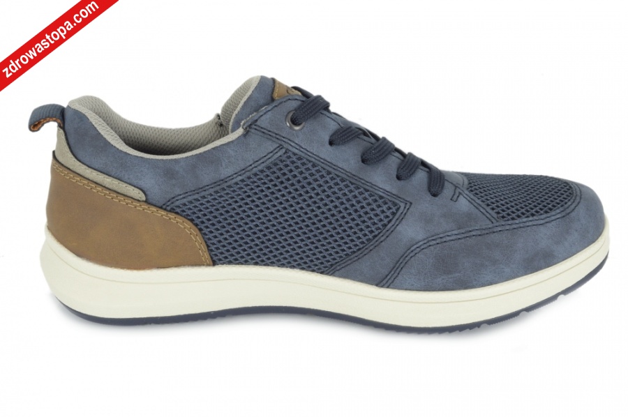 Typ: półbuty męskie Kolor: granatowy Tęgość: H Materiał wierzchni: skóra naturalna i siateczka Wnętrze buta: materiał obuwniczy, wyjmowana miękka wkładka Dodatkowe informacje: obuwie męskie, sznurowane suwak z boku ułatwiający zakładanie, przewiewna siateczka dobrze wentyluje wnętrze obuwia.