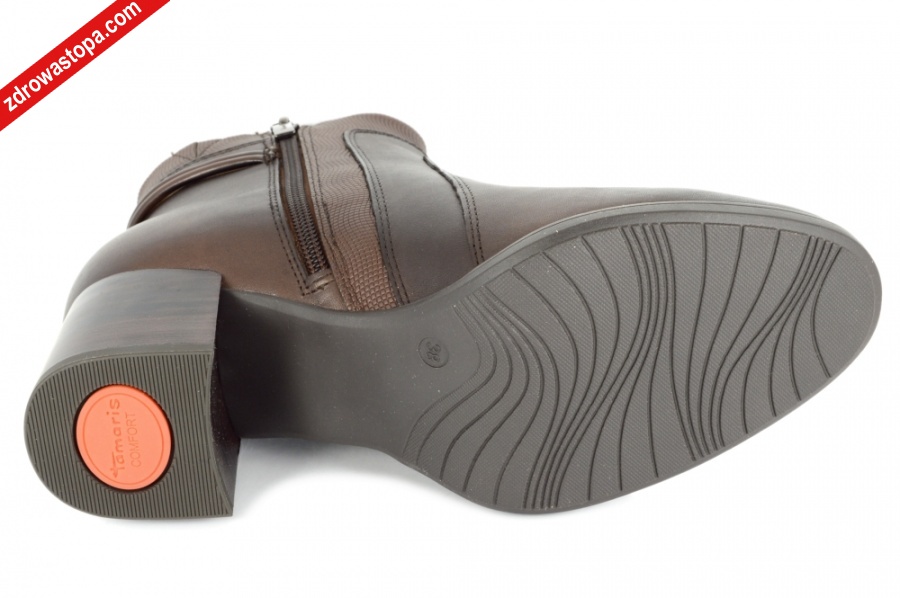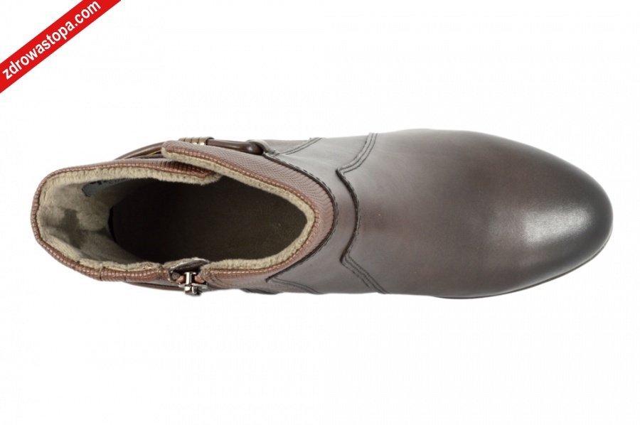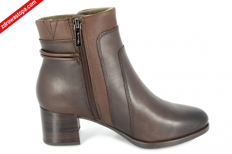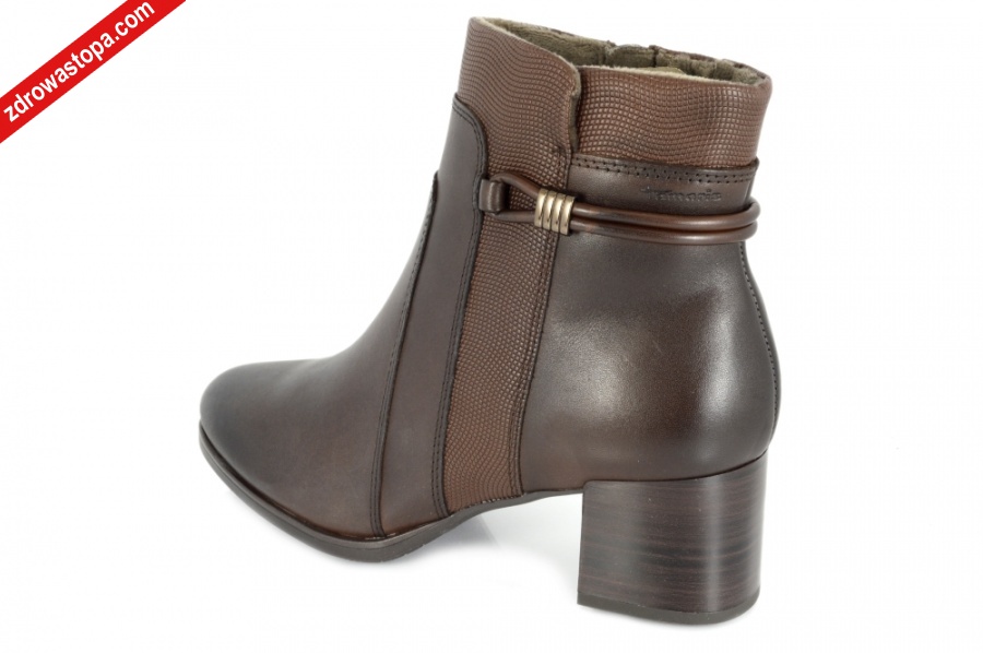 Typ: botki damskie Kolor: brązowy – chestmut Materiał wierzchni: skóra naturalna lico Wnętrze buta: cienka ocieplina Tęgość: H Wysokość obcasa: 60 mm Dodatkowe informacje: obuwie zapinane na suwak, posiada nowoczesny fason. Spody absorbują drgania i dobrze izolują stopę od zimnej powierzchni. Wyjmowane miękkie wkładki. Podeszwa poszerzona w palcach i bardzo elastyczna, nie ślizgająca się.