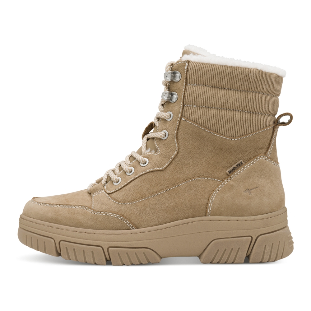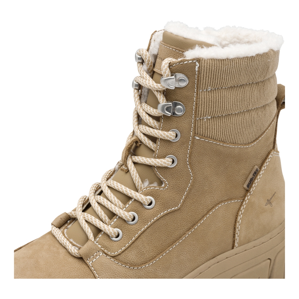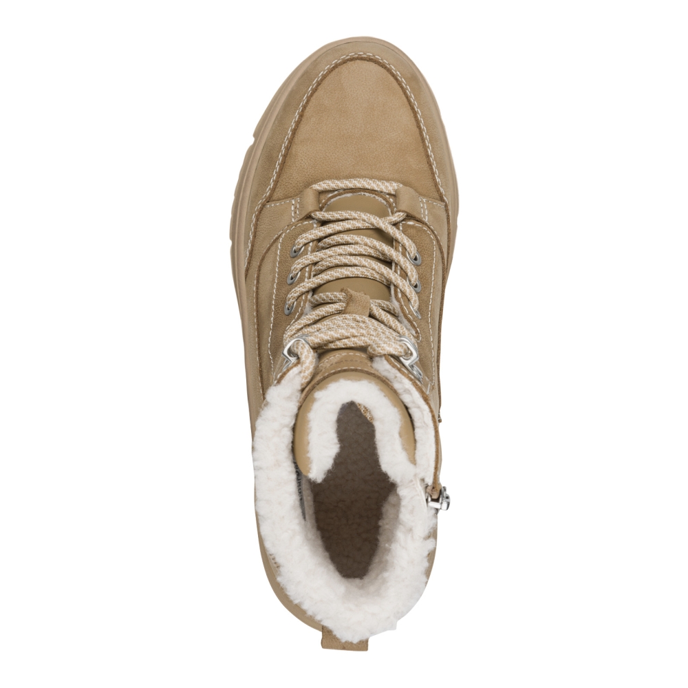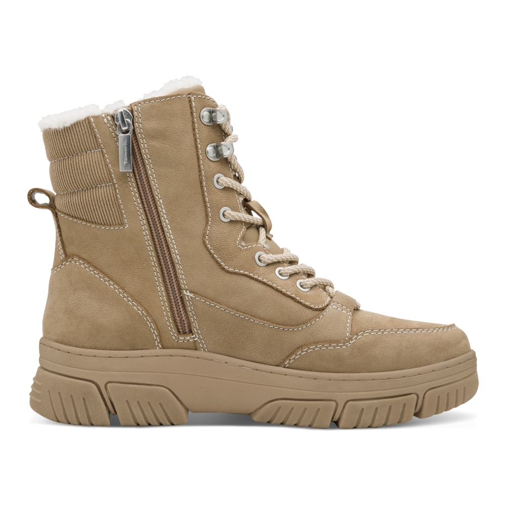 Typ: botki damskie Kolor: beżowy Materiał wierzchni: skóra naturalna z JanaTex Wnętrze buta: wełna Tęgość: H Dodatkowe informacje: Bardzo wygodne w zakładaniu dzięki suwakowi z boku, idealne dopasowanie do stopy. Środek wykończona miękka wełną, wyjmowana wkładka. Spody elastyczne i antypoślizgowe. Obuwie jest bardzo lekkie i posiada membranę TEX uniemożliwiającą przemakanie butów