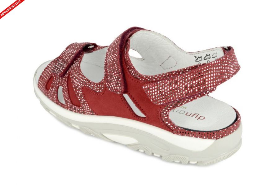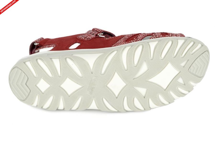 Typ: sandały damskie Kolor: czerwony – firmino Tęgość: H Materiał wierzchni: skóra naturalna nubuk Wnętrze buta: skóra naturalna Dodatkowe informacje: wygodne, regulowane na trzy rzepy, lekka antypoślizgowa podeszwa, mogą być stosowane przez osoby z tzw. „zespołem stopy cukrzycowej”. Spełnią oczekiwania najbardziej wymagających odbiorców. Wkładka wyjmowana. Sandał typu „dynamic” ma bardzo dobrze wyprofilowaną podeszwę.